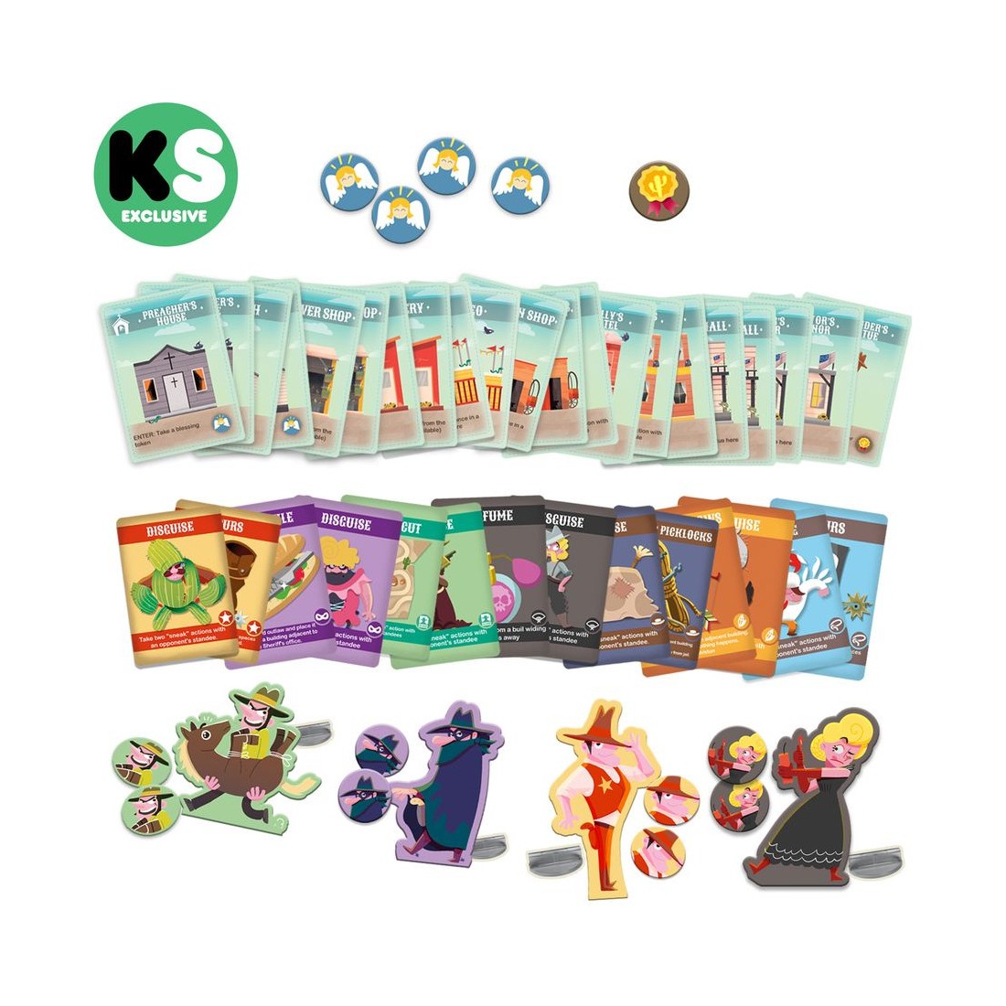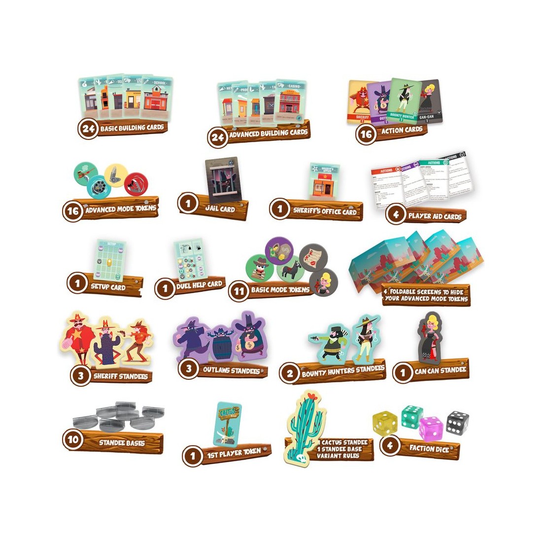 Le jeu Cactus Town se joue sur un plateau composé de cartes face cachées : la banque, le saloon, le barbier... Chaque faction aura un objectif pour gagner, qui peut être de piller l'un des lieux et de prendre la fuite, de capturer les malfrats ou encore de voler des chevaux.