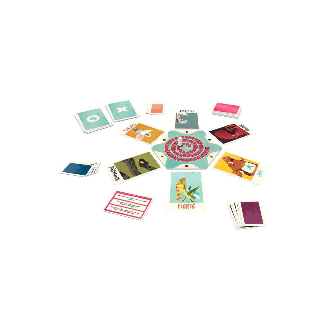 Chacun·e choisit secrètement l’émotion qu’il/elle ressentirait dans cette situation parmi les six disposées autour du plateau. Vous tentez ensuite de deviner l’émotion choisie par une autre personne. Celle-ci tente à son tour de deviner l’émotion d’une autre, jusqu’à ce que toutes vos émotions soient révélées.
