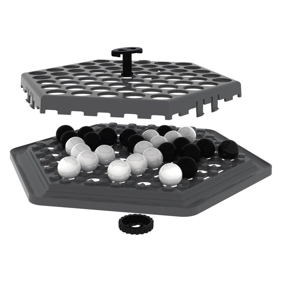En déplaçant les balles, modifie le rapport de majorité dans une rangée et tente de pousser les balles adverses hors du plateau de jeu