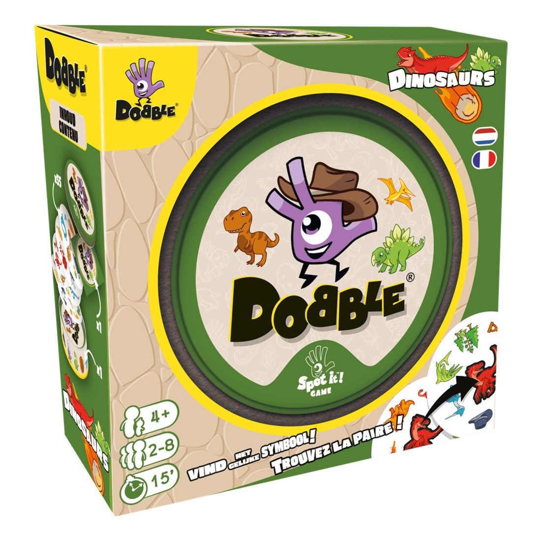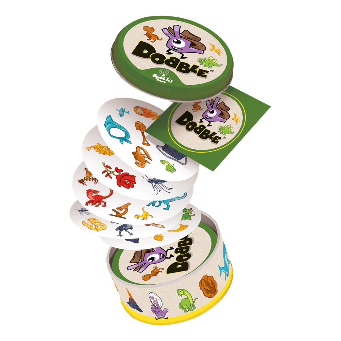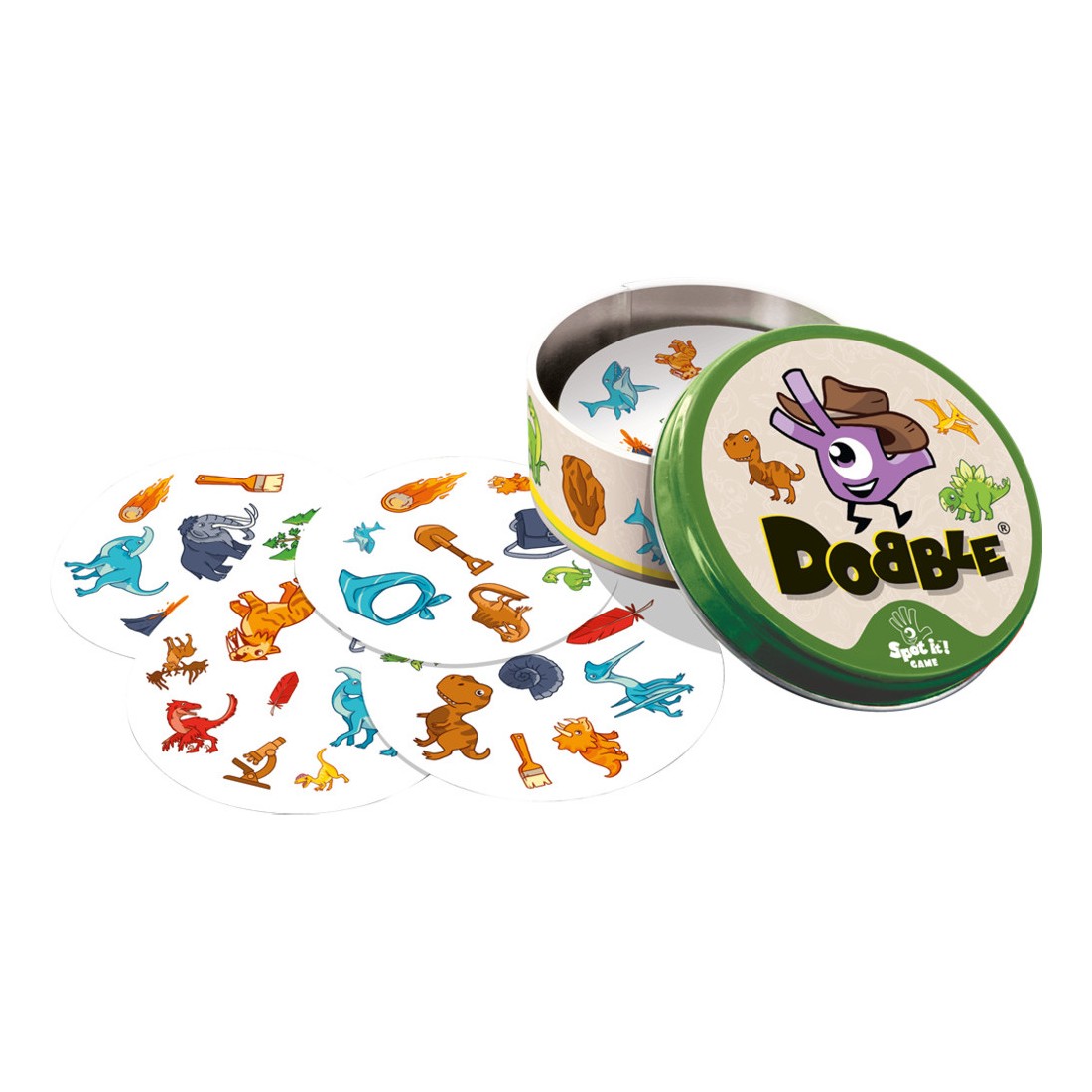 Ambiance frénétique au rendez-vous, qui fera vibrer petits et grands. Contenu :30 cartes illustrées, 1 boîte métal Dobble, 1 livret de règles