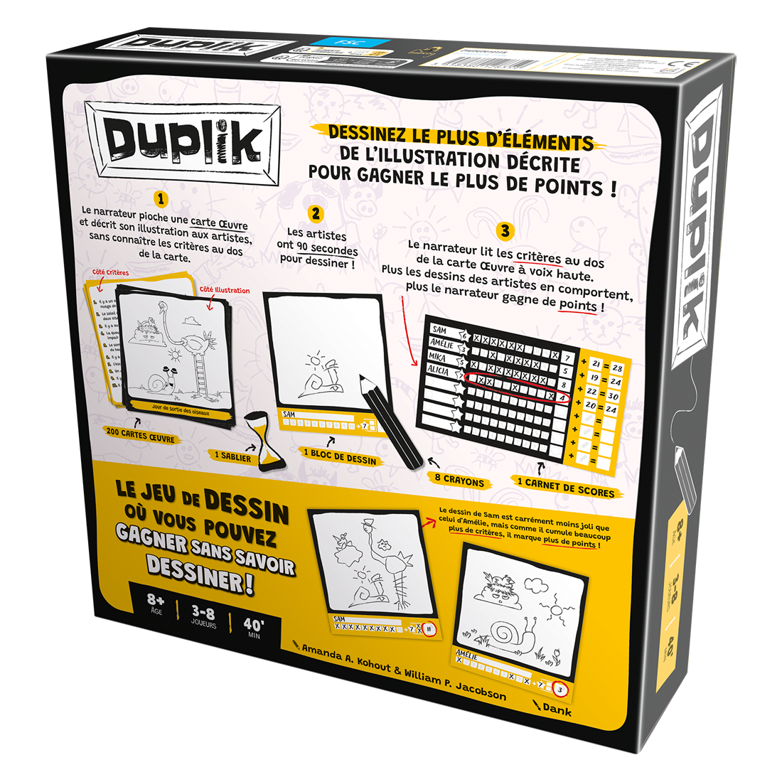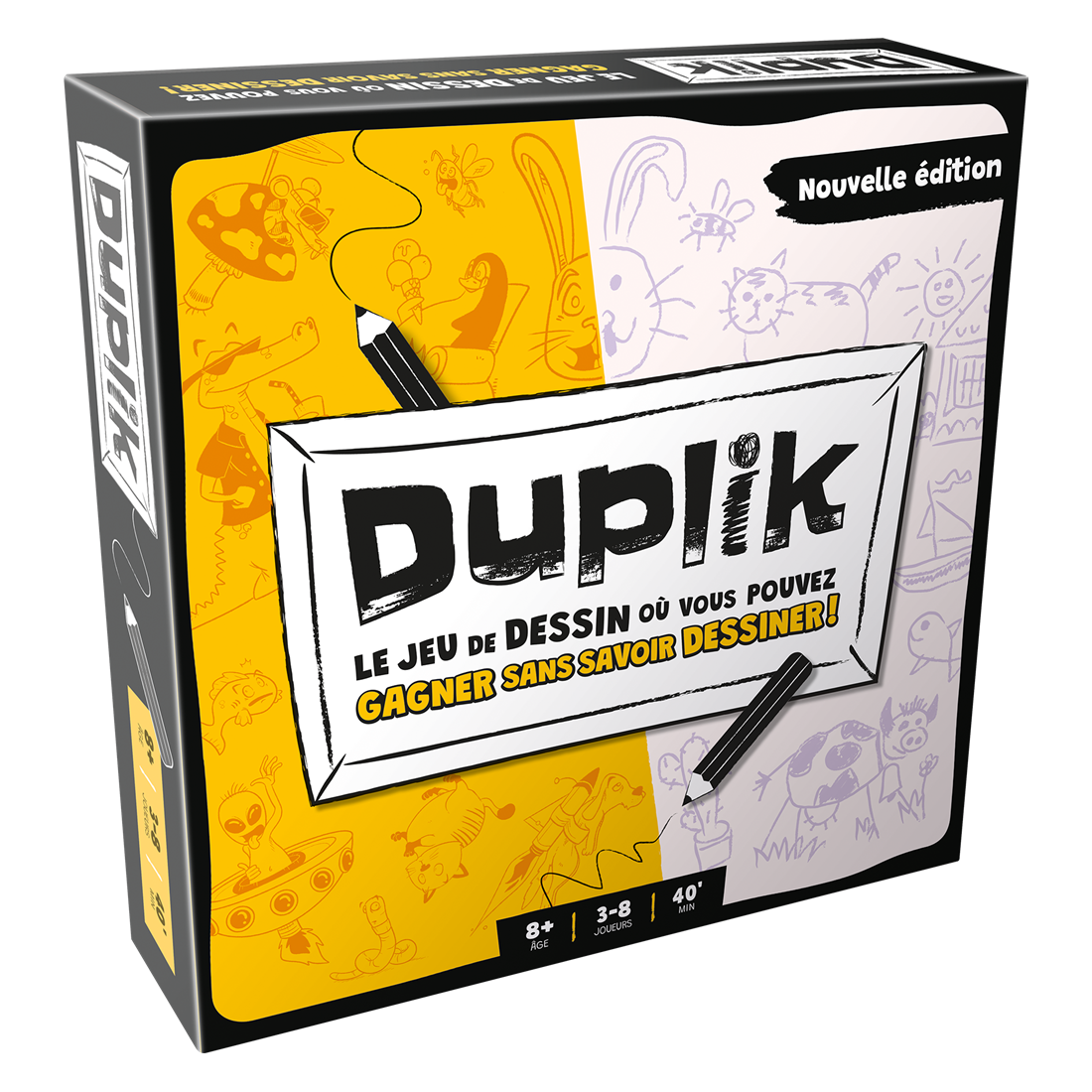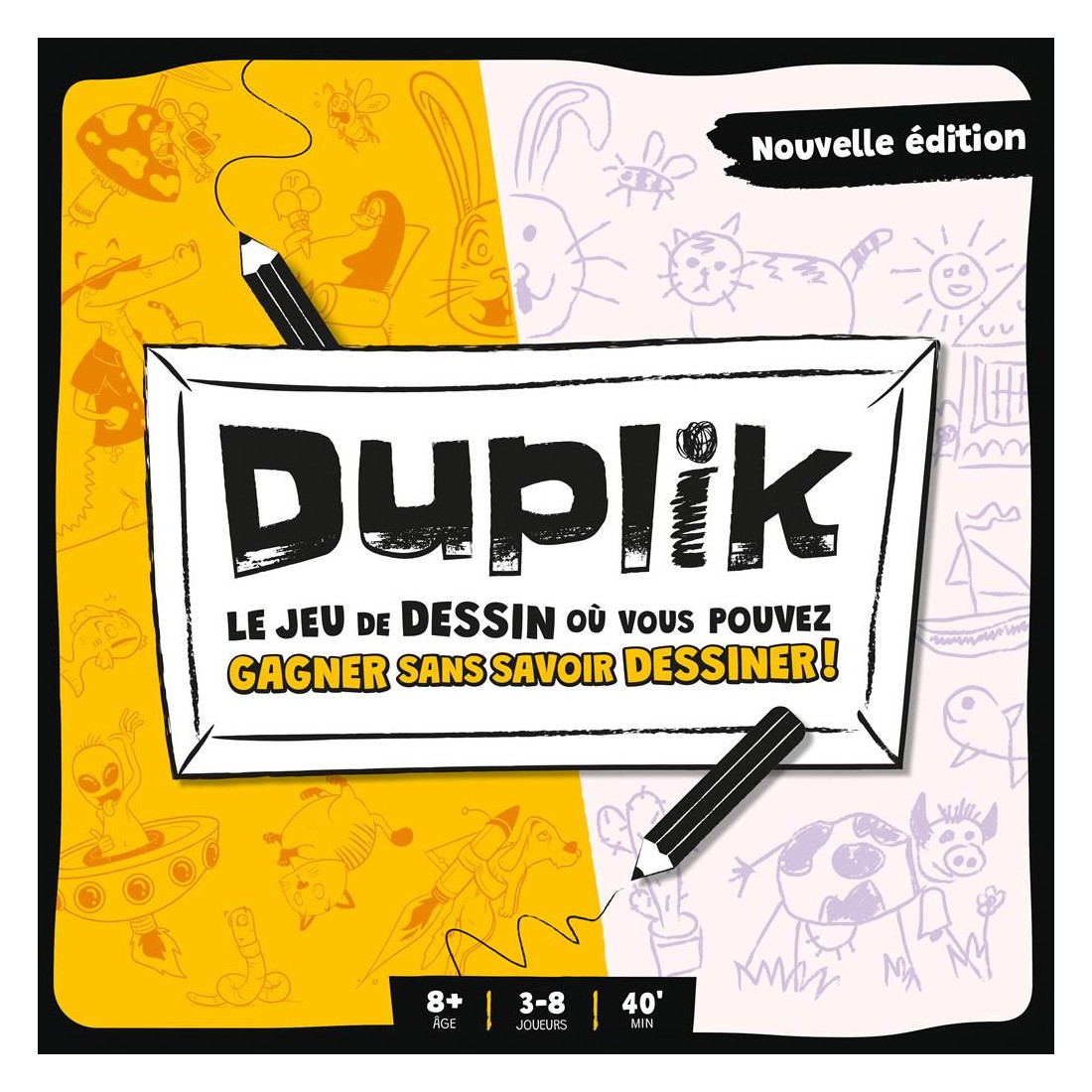 Dans Duplik, l’un des participants joue le rôle du maître d’œuvre. Sa mission : décrire une illustration rigolote en donnant aux autres joueurs autant de détails que possible. Pendant ce temps, les autres joueurs dessinent la scène décrite. Quand le sablier s’est écoulé, les joueurs s’échangent leurs œuvres et l’on contrôle.