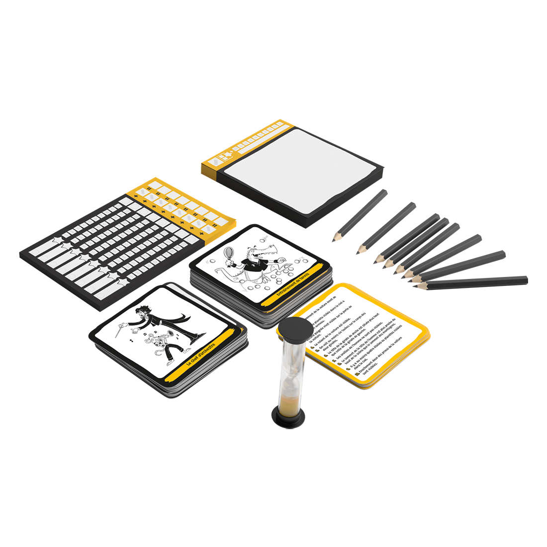Un jeu d’ambiance convivial et amusant pour toute la famille. Contenu :200 cartes, 8 crayons, 1 sablier, 1 carnet de score, 1 rodoïde rouge, 1 livret de règles