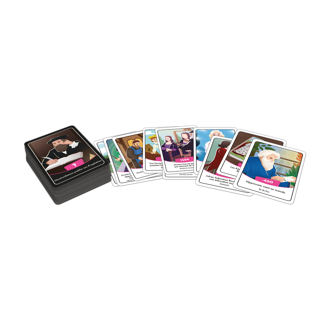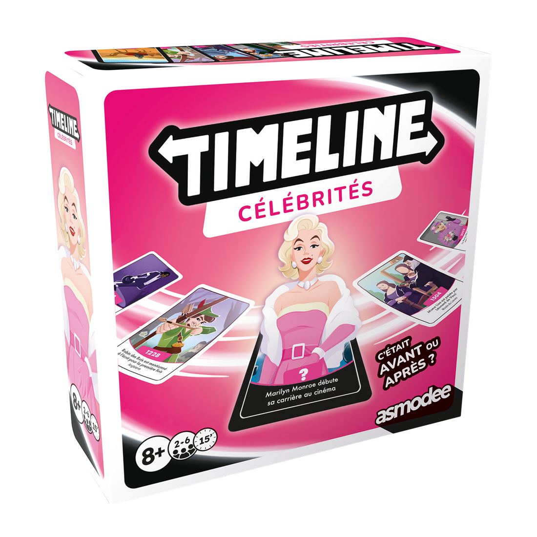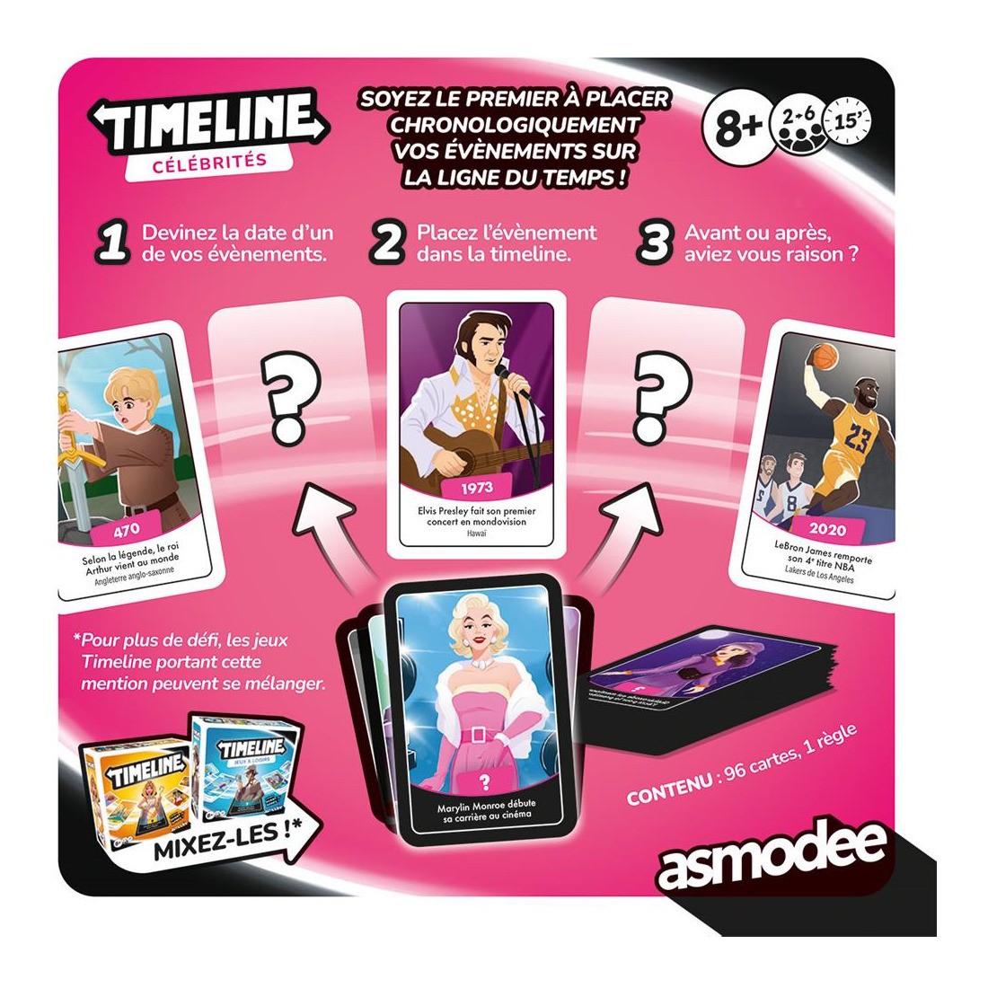 Pas besoin d’être ultra calé en histoire, pour remettre dans l’ordre chronologique les personnages célèbres de cette nouvelle version de Timeline. Classez les personnages célèbres sur la frise, en utilisant vos connaissances et votre logique. Débarrassez-vous de toutes vos cartes pour gagner.Se mélange facilement aux autres boîtes thématiques pour varier les plaisirs !