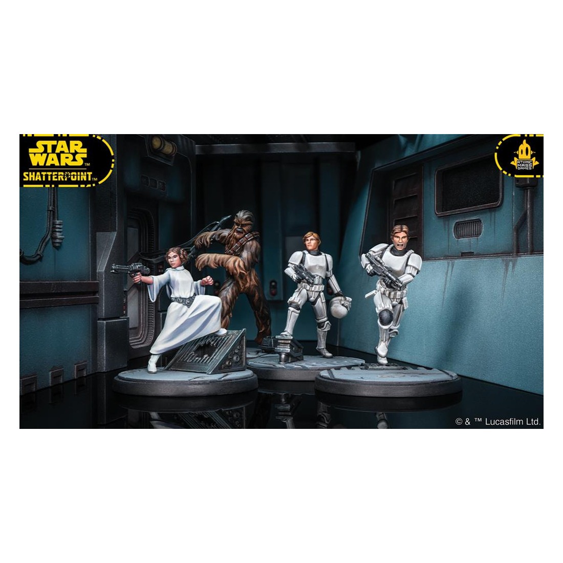 Avec duplicité, persuasion et adresse au tir, ils incarnent l’espoir dans la lutte audacieuse. Contient les figurines de Luke et Han déguisés en Stormtroopers, de la Princesse Leia, et de Chewbacca. Figurines non peintes et à assembler. Nécessite une boîte de base Star Wars Shatterpoint™