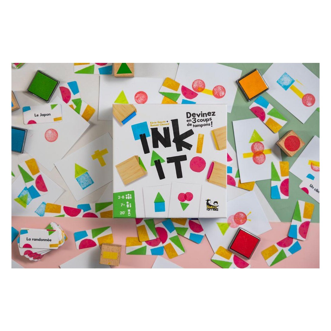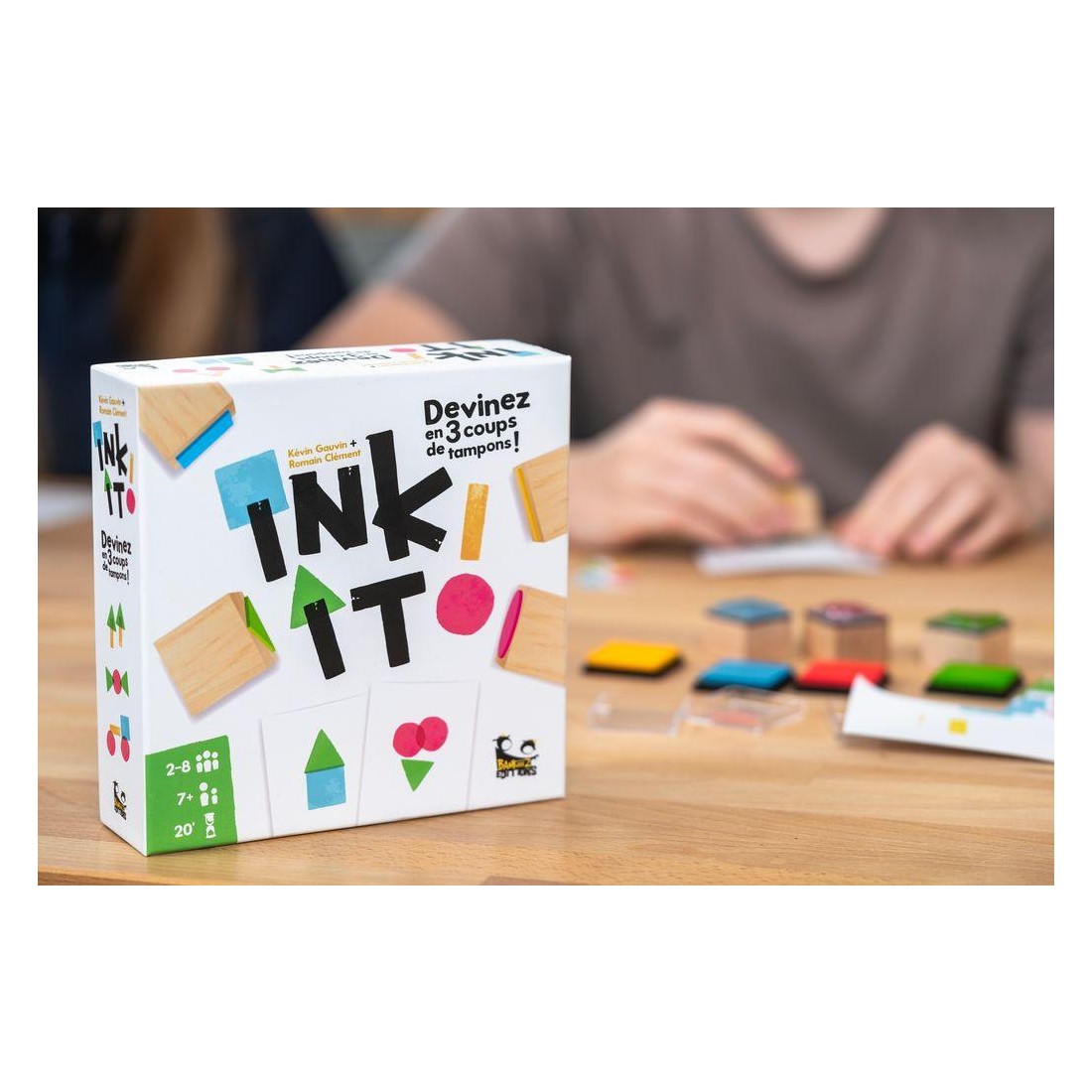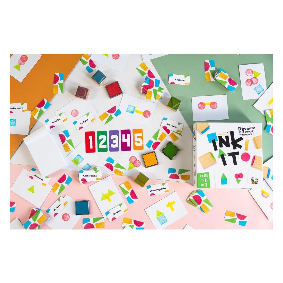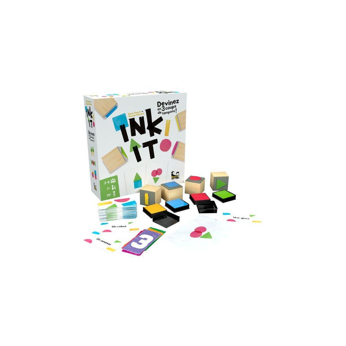 Dans le jeu Ink It !, votre objectif est de faire deviner des mots et des objets à vos camarades de jeu en utilisant des tampons encreurs. Mais attention, plus la partie avance, plus les dessins doivent être minimalistes ! Coopérez pour faire le moins d’erreurs possible et atteindre la dernière manche !