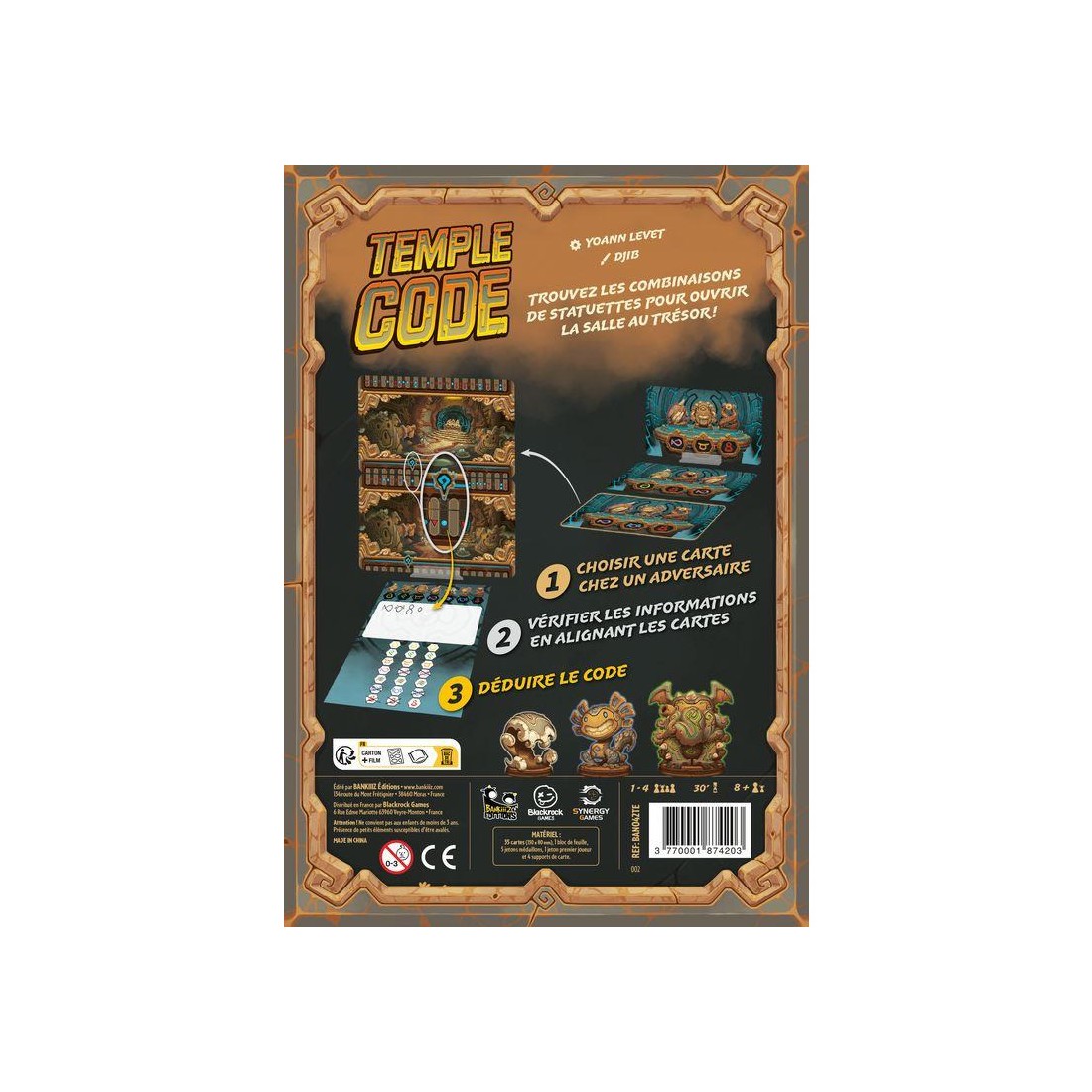 Bienvenue dans le défi captivant des statuettes avec Temple Code ! Votre mission est de percer le mystère de la combinaison de statuettes devant vous en utilisant les cartes de vos adversaires pour obtenir des indices précieux. Mais méfiez-vous, ne les aidez pas trop, car chaque joueur peut dévoiler sa combinaison à tout moment !