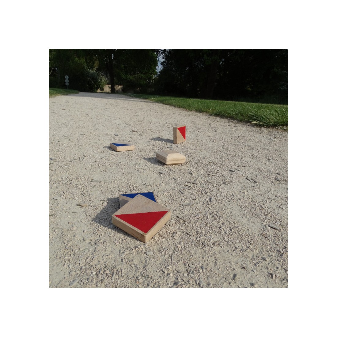 Bibock est un jeu de lancer et de précision où les joueurs, individuellement ou en équipes, doivent lancer leurs bocks afin de se rapprocher le plus possible du “Maître”, ou de se positionner stratégiquement dessus. La mécanique principale repose sur un équilibre subtil entre adresse, stratégie et chance : chaque lancer peut faire basculer la partie, voler des palets à l’adversaire ou retourner complètement la situation. Les règles sont simples à comprendre, mais offrent une vraie profondeur de jeu grâce aux interactions entre les "bocks", aux retournements de situation et aux choix tactiques à chaque tour, à chque lancer. Résultat : des parties dynamiques, rythmées, accessibles aux débutants comme aux joueurs plus aguerris.