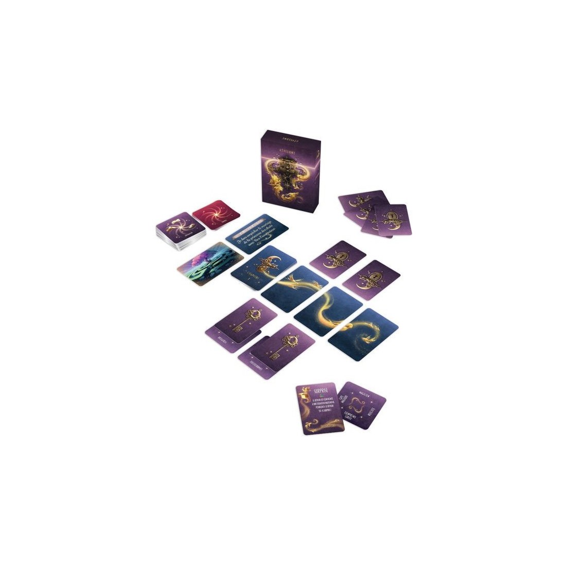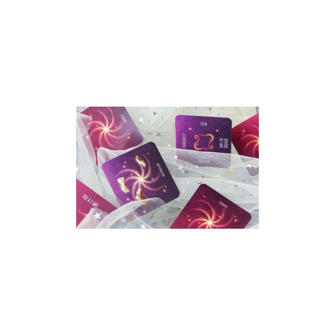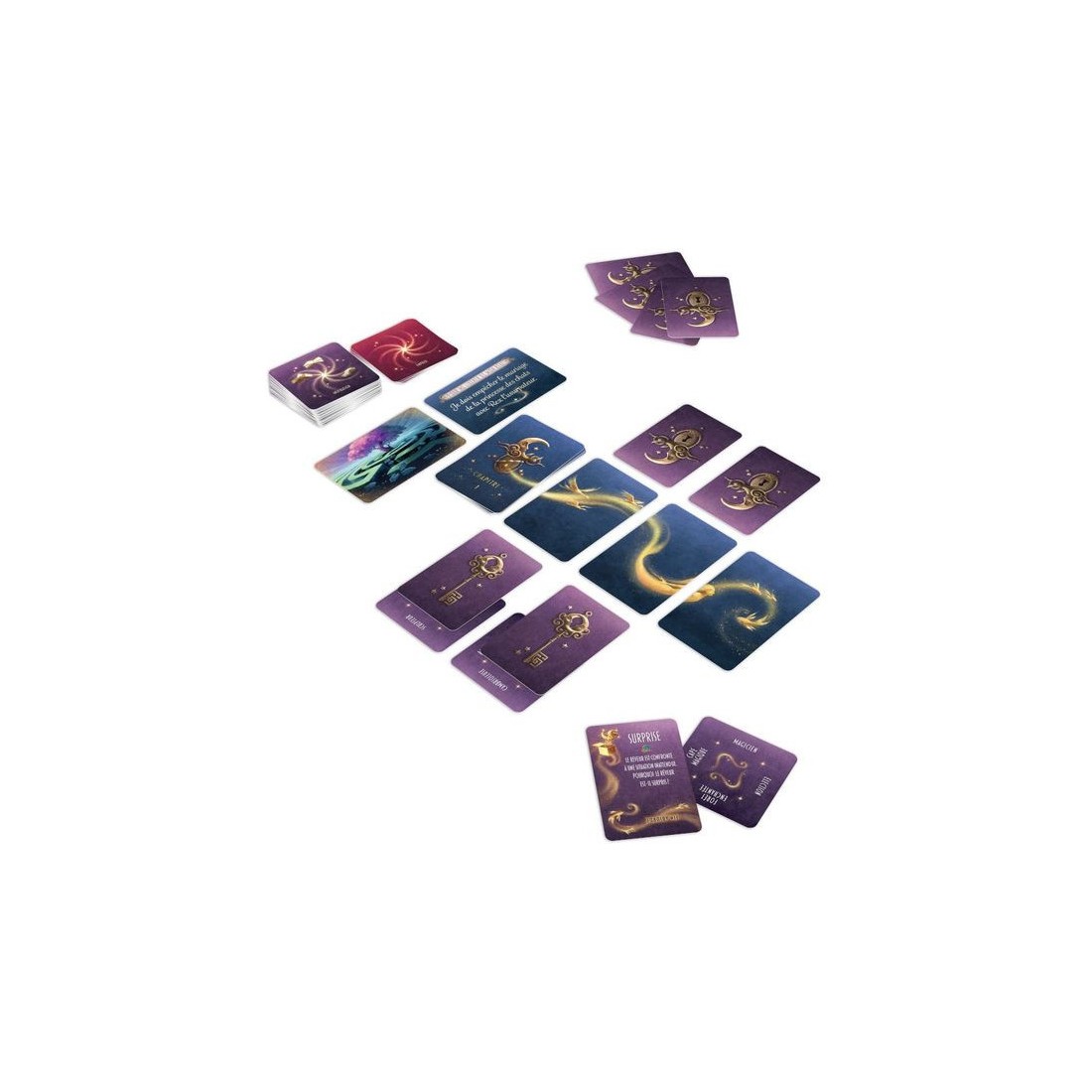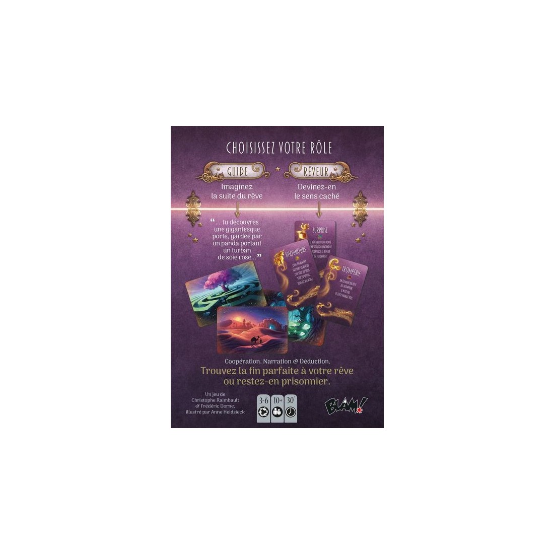 Contenu : - 5 cartes Chapitre, - 5 cartes Rêvelune, - 12 cartes Rêve, - 16 cartes Rêveur, - 16 cartes Guide, - 48 cartes Inspiration, - 12 cartes Emprise, - 1 règle du jeu