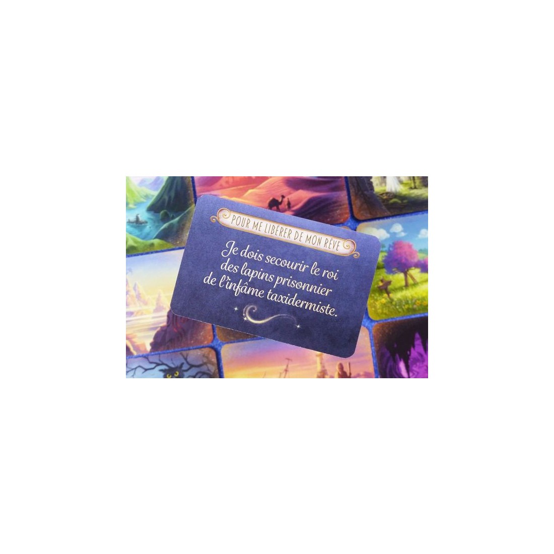 Pour cela, ils peuvent s’aider de leur carte Inspiration qui leur suggère des mots-clé. Le Rêveur, quand à lui, écoute attentivement le récit puis – une fois que tous les Guides se sont exprimés – doit retrouver le sens caché derrière chaque intervention, à l’aide de ses cartes Rêveur (identiques aux cartes Guide en jeu). Un certain nombre d’associations réussies permet de passer à un nouveau chapitre, avec des contraintes qui évoluent.