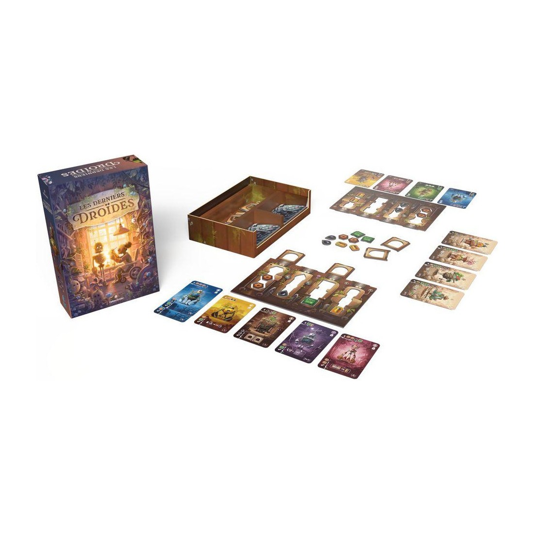 Dans Les Derniers Droïdes vous incarnez des Écomécanos : artisans et artisanes d’un « nouveau monde » visant à réduire l’extraction de matières premières de notre planète. Votre art consiste à construire, réparer ou recycler en pièces détachées les robots qui étaient la base de la main d’œuvre de « l’ancien monde » productiviste, pour passer d’un mode de vie extractiviste à un mode de vie plus en accord avec les limites physiques planétaires. Votre rêve ? Recevoir la décoration la plus prestigieuse qui soit chez les Écomécanos : la médaille de l’Ordre de la Feuille Votre mission : donner une seconde vie aux derniers droïdes abandonnés pour assurer la survie de l’humanité. Choisissez soigneusement les épaves les plus prometteuses, gérez intelligemment vos ressources, et construisez la collection de droïdes la plus performante possible. Chaque réparation compte dans cette course contre la montre écologique ! Contenu :- 1 insert distributeur de cartes