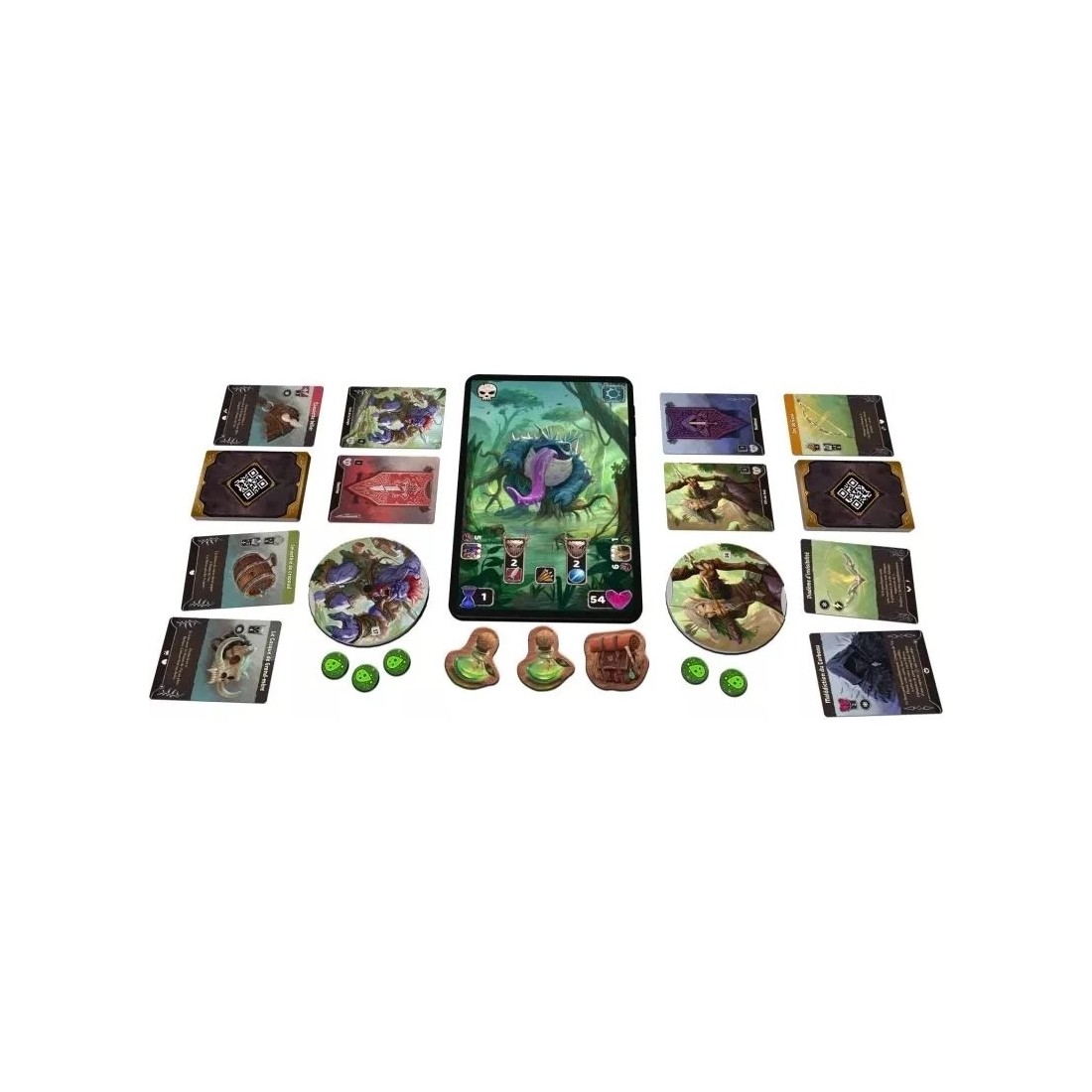 Chaque partie vous demande de composer votre combattant en associant un héros et une classe, puis d’utiliser votre deck personnel pour attaquer, protéger vos alliés, soigner, piocher ou déclencher des effets spéciaux au bon moment. L’originalité du jeu repose sur son application compagnon, indispensable pour jouer.