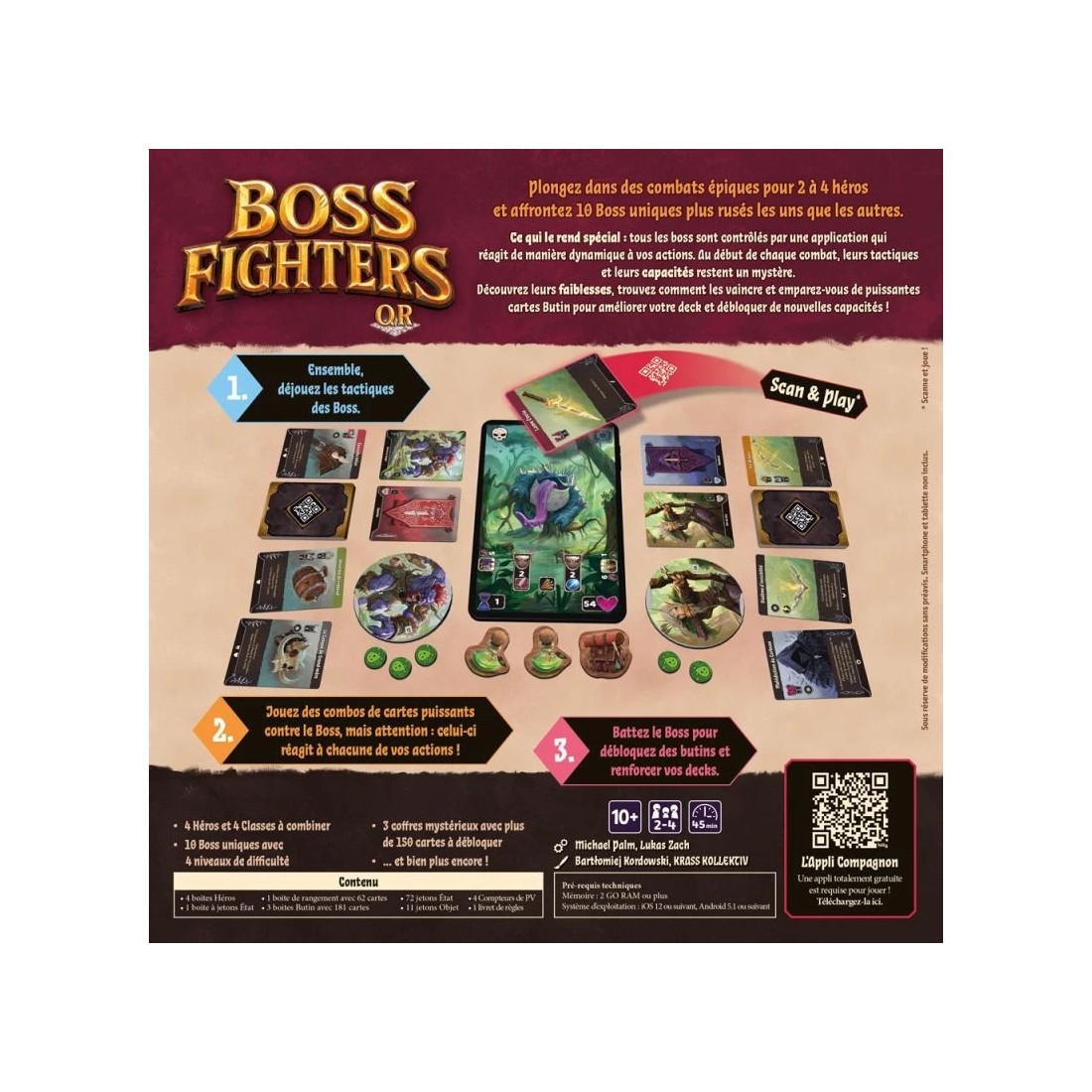 Dans la pénombre, des silhouettes gigantesques émergent, imprévisibles, changeantes. Vos armes brillent, la magie crépite et chaque affrontement vous en apprend autant sur vous-même que sur vos ennemis... Survivre, c’est observer, analyser, comprendre… avant d’être totalement submergés ! Le jeu Boss Fighters Qr vous propulse dans une campagne coopérative où votre groupe de héros n’affronte pas de simples ennemis, mais de véritables boss aux comportements uniques.