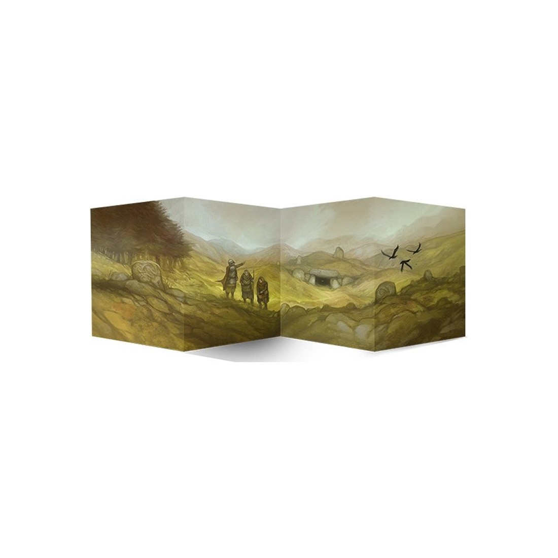 Nous avons souhaité offrir à ce jeu un écran 4 volets (format portrait) qui n’existe pas en version originale. L’illustration est l’œuvre de Jon Hodgson qui a aussi réalisé les couvertures des ouvrages et une partie des illustrations intérieures. Nous sommes très heureux de pouvoir vous proposer cet écran en exclusivité pour la gamme en français, dont les tableaux recapitulant les règles principales ont été conçus en collaboration avec les auteurs du jeu.