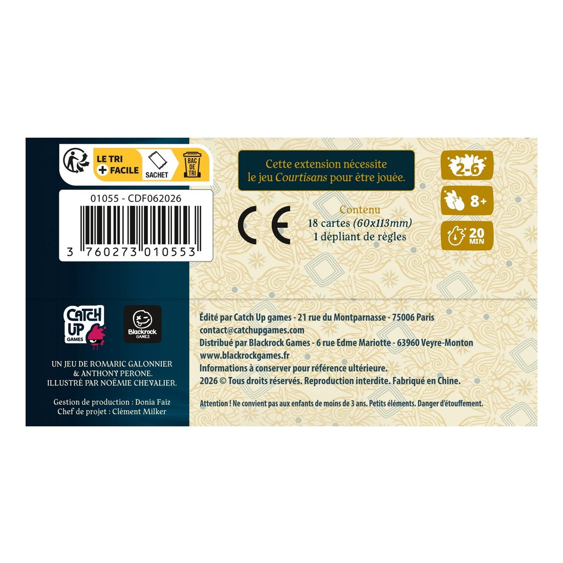 Contenu : 18 cartes Courtisan, 1 livret de règles