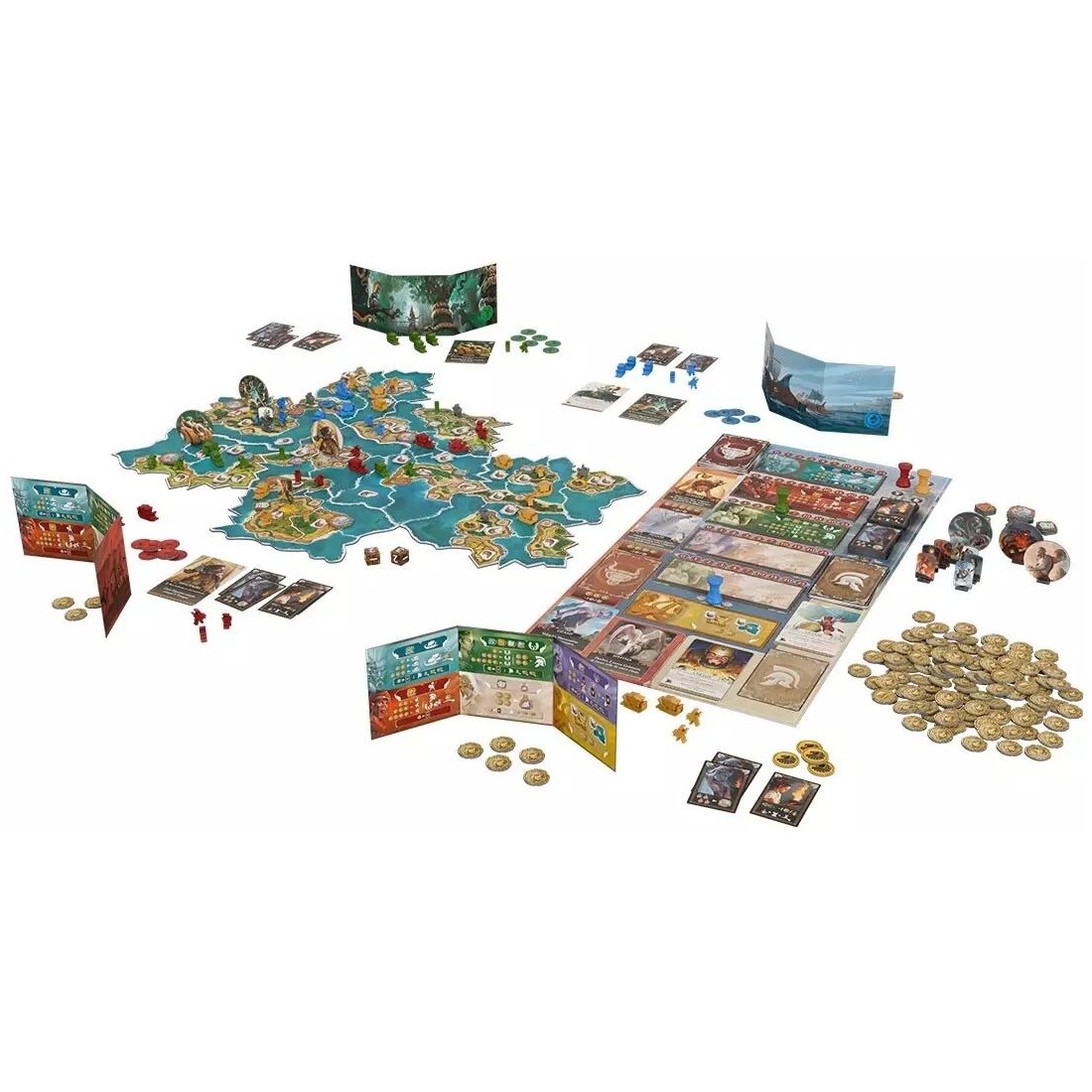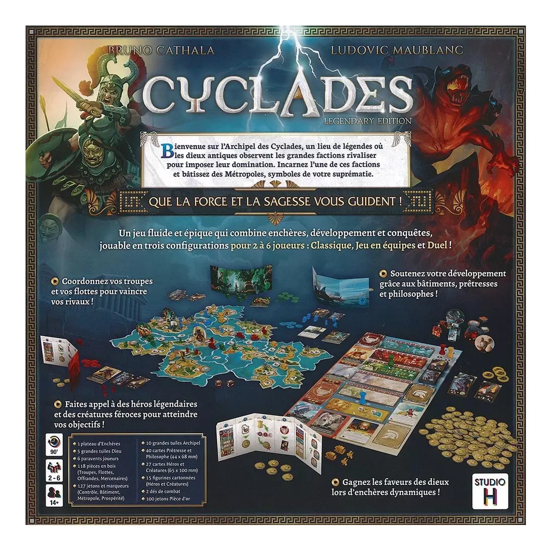 - Des phases d'enchères plus courtes et plus dynamiques grâce à une nouvelle échelle d'enchères exponentielle - 6 dieux au lieu des 5 originaux, augmentant la variété d'actions des joueurs - De nouvelles actions de construction gratuites et obligatoires pour les dieux qui accélèrent considérablement le temps de jeu et l'interaction entre les joueurs