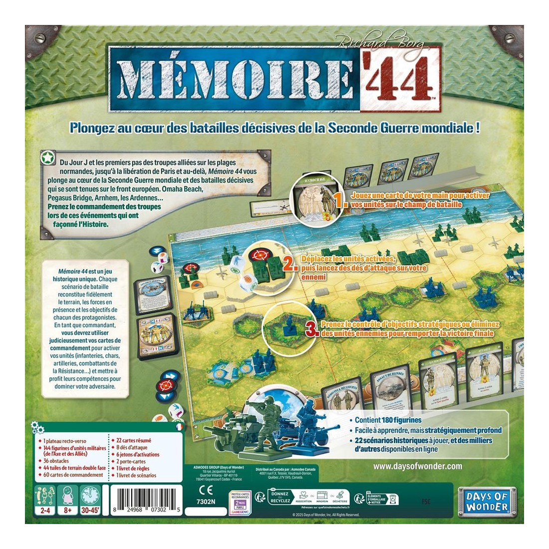 Mémoire 44 est un jeu de société destiné à transmettre aux jeunes générations la mémoire des évènements des débarquements de 1944 et de la libération de la France.