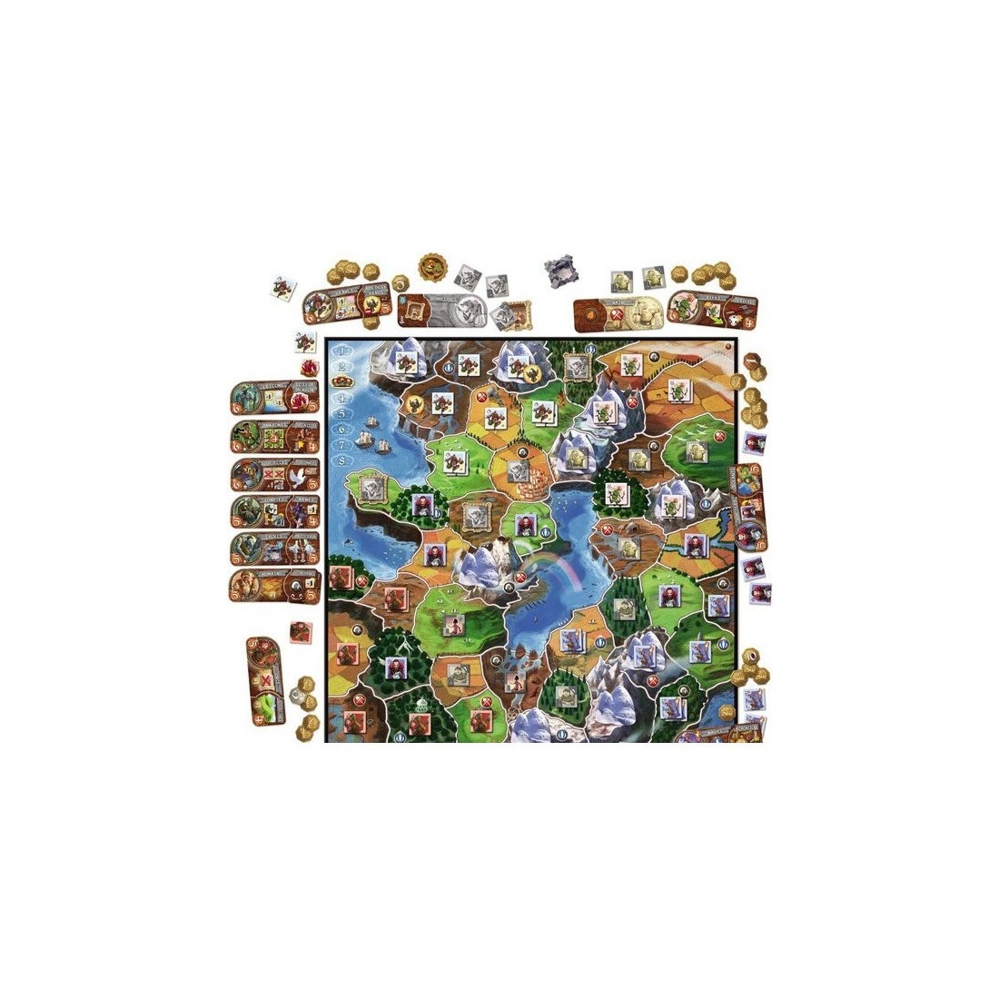 - 10 Antres de Troll, 9 Montagnes, 6 Forteresses, 5 Campements, 2 Tanières et 1 jeton compte-tours ;