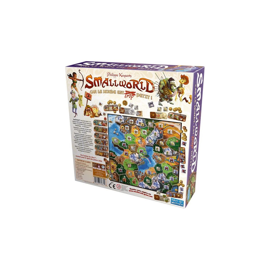 Small World est un jeu pour 2 à 5 joueurs dans lequel chacun lutte pour établir sa civilisation dans un monde fantastique et fantasque. Cependant, ce monde est tout petit, et il n'y a pas assez de place pour tous ! Prenez la tête d'un des quatorze Peuples de Small World et étendez votre empire aux dépens de vos voisins en vous appuyant sur les pouvoirs spéciaux de vos personnages ! Lorsque votre civilisation sera trop exposée, il faudra avoir la sagesse de le reconnaître et d'accepter son déclin... mais ce sera pour mieux vous relever avec une nouvelle civilisation et remporter la victoire ! Contenu