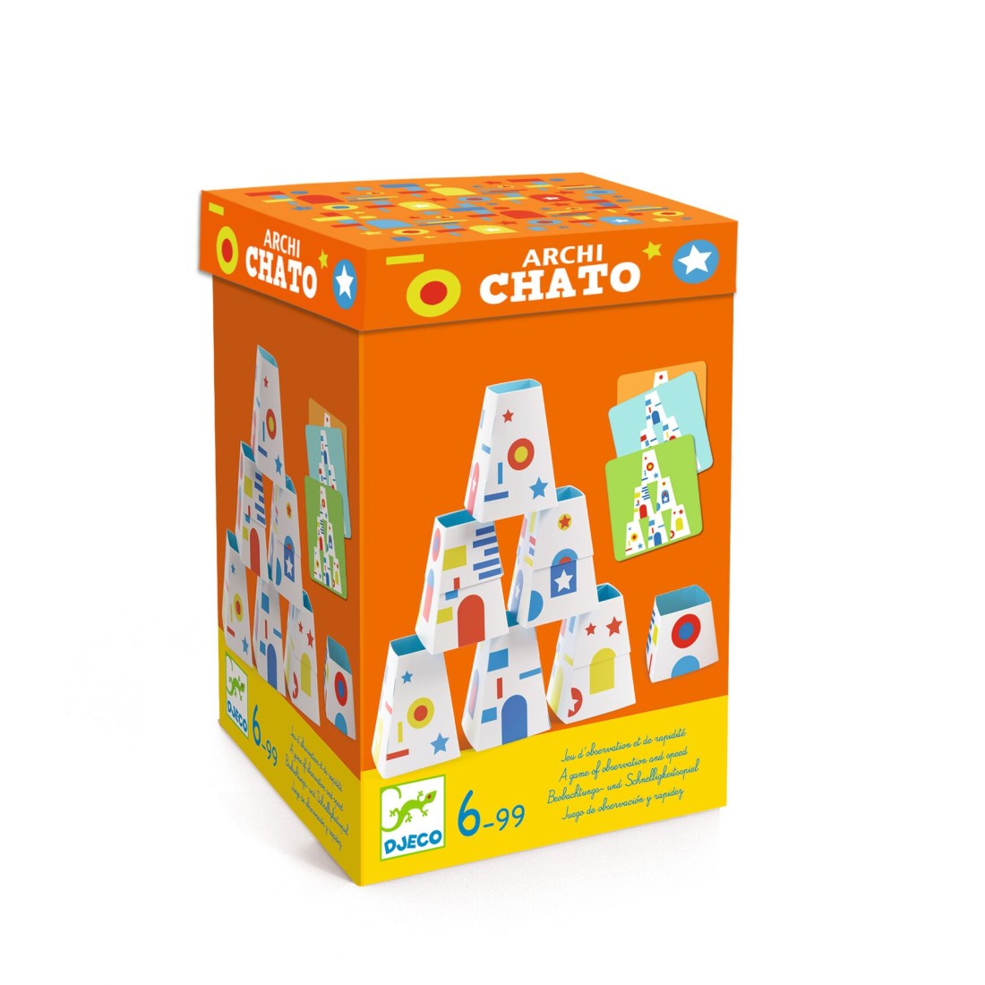 Le génie d'Archi Chato vient des petits cônes qui peuvent coiffer les plus grands et modifier la partie supérieure. Tous les éléments géométriques utilisés pour décorer les cônes sont empruntés au monde du cirque. Il faut être extrêmement attentif pour gagner.
