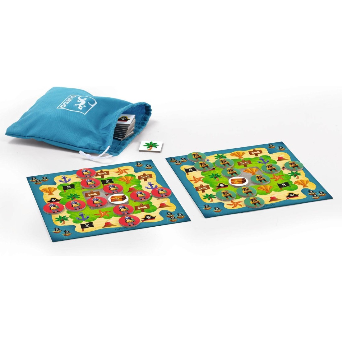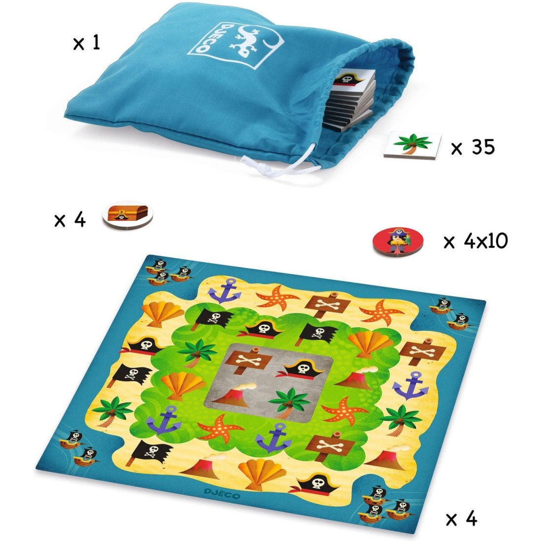 Hissez haut matelot ! Qui sera le 1er pirate à retrouver le chemin de son trésor caché au milieu de l’île ? Le joueur qui parvient à reproduire la croix indiquant le lieu de la cachette de son trésor remporte la partie.