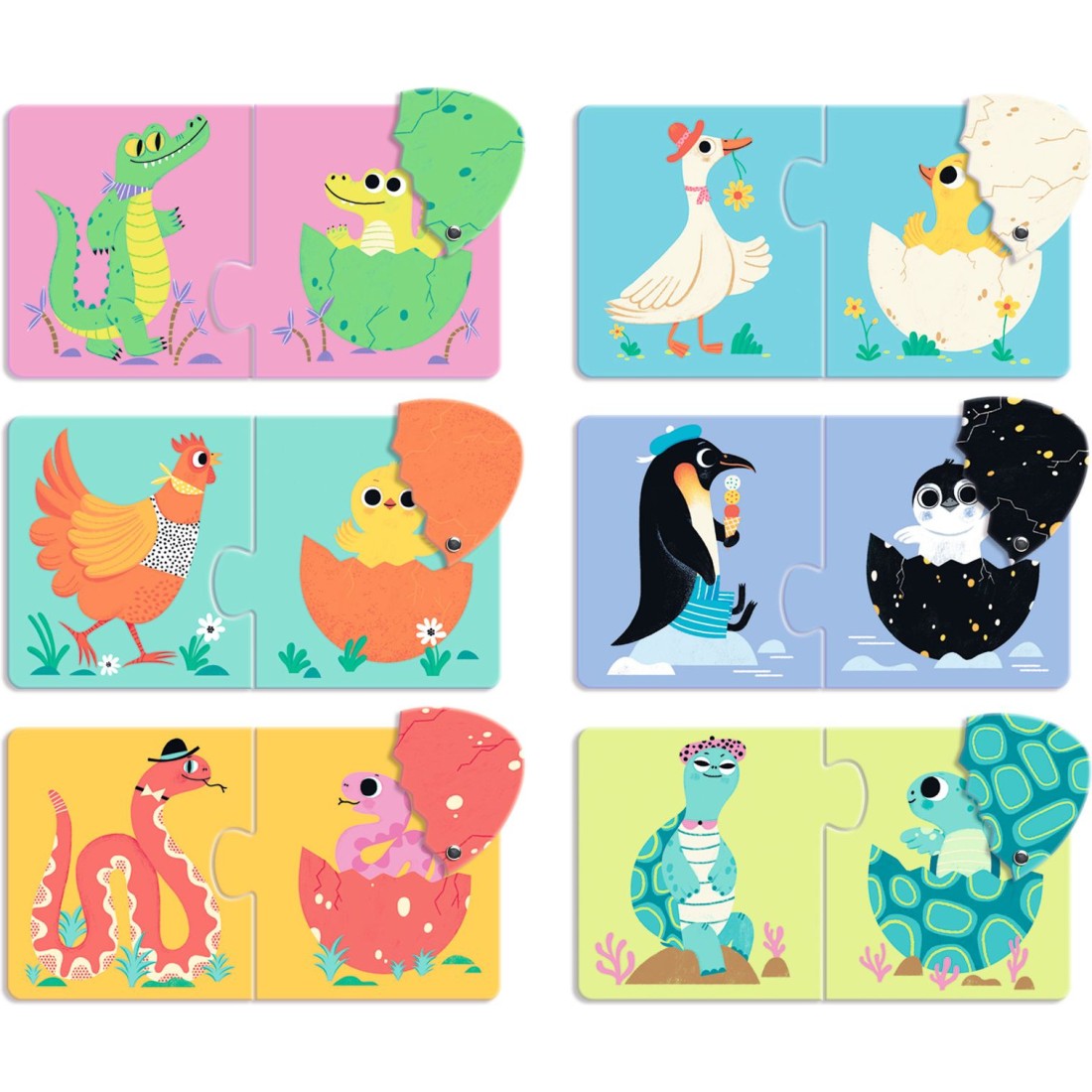 Chaque puzzle représente un animal et son oeuf, et une fois les deux pièces assemblées, la surprise est au rendez-vous avec la découverte d'un bébé animal caché à l'intérieur. Un jeu amusant et éducatif qui permet à votre enfant d'apprendre tout en s'amusant.