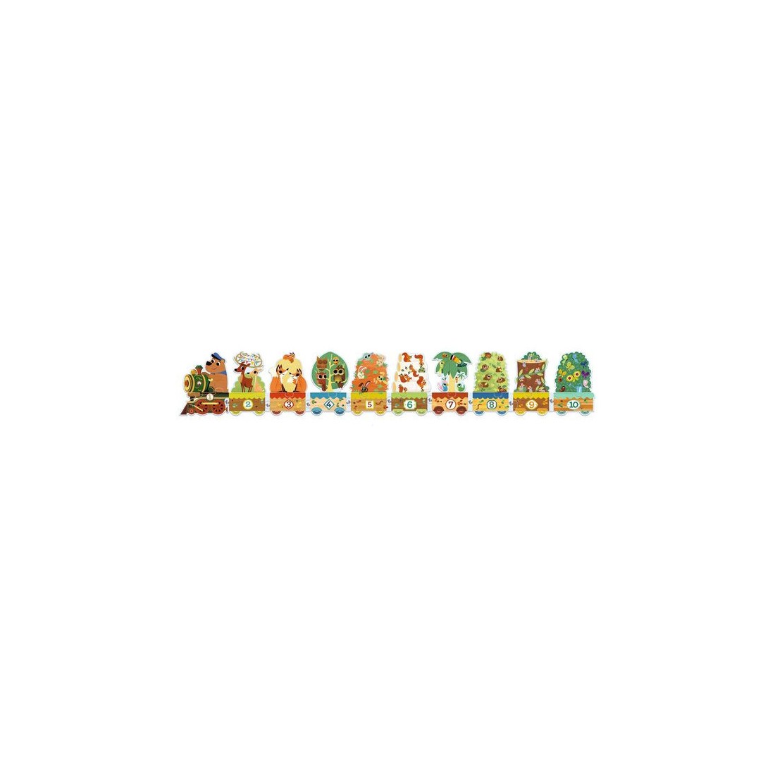 Puzzle Trio - Puzzle Frise Je Compte est un puzzle éducatif pour les enfants dès 3 ans. Un puzzle de 20 pièces pour débuter l'apprentissage des chiffres, grâce à ce train des animaux de la forêt.
