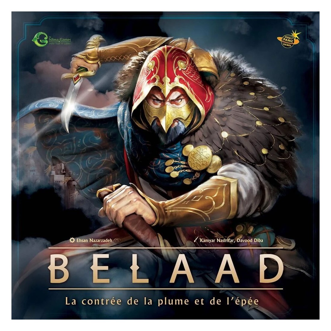 Belaad : La Contrée de la Plume et de l'Epée est un jeu de société jouable de 2 à 6 joueurs, dès 10 ans pour des parties de 45 minutes, édité par Don't Panic Games.