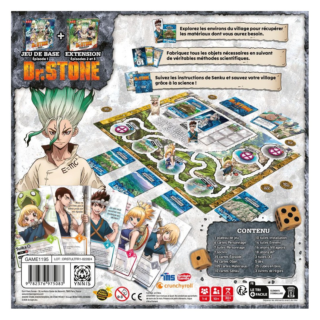 Dr. Stone Le Jeu - Édition Intégrale est un jeu coopératif. Il sera difficile de gagner votre première partie, mais les défaites vous aideront à emprunter le chemin de la réussite. Au fur et à mesure des épisodes, la difficulté ainsi que le nombre de tâches à accomplir augmenteront.