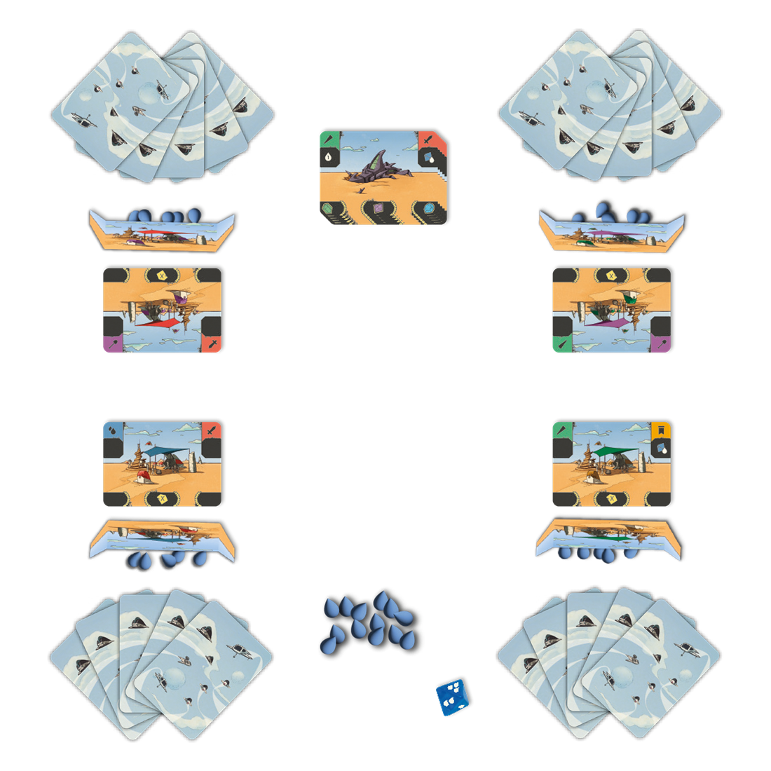 Au terme du 15ᵉ tour, toutes les cartes Technologie auront été révélées. C’est l’heure du verdict. Les joueurs comptent leurs points de victoire, obtenus grâce aux technologies collectées et à l’eau accumulée.