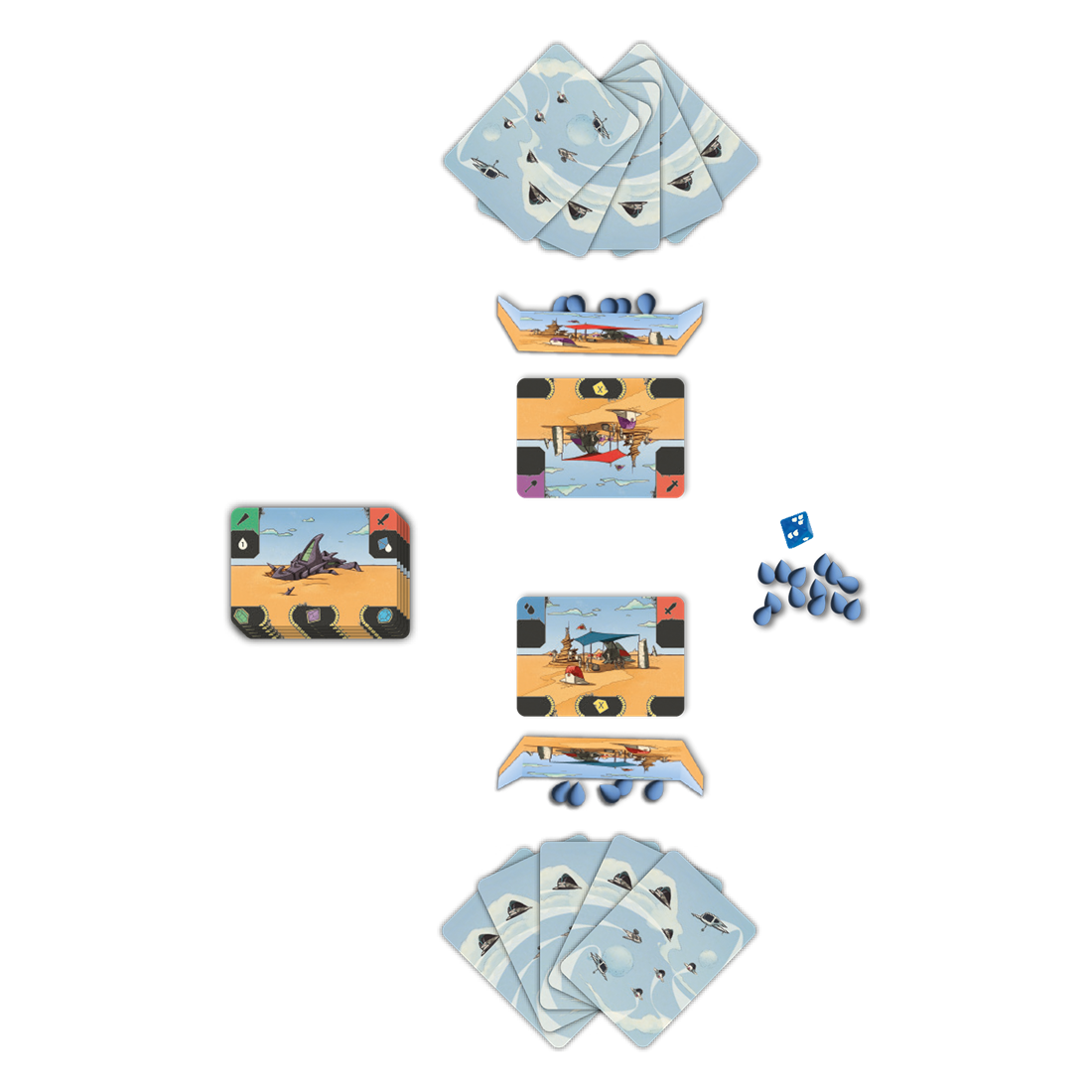 - Défausse : les cartes jouées sont retirées de votre main, ajoutant une dimension de gestion et de timing à vos décisions.