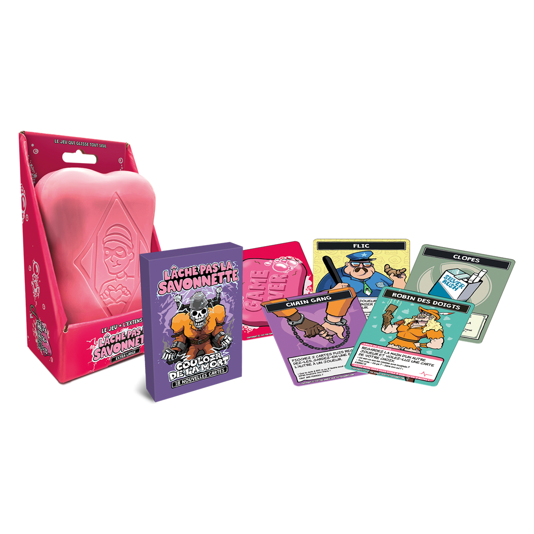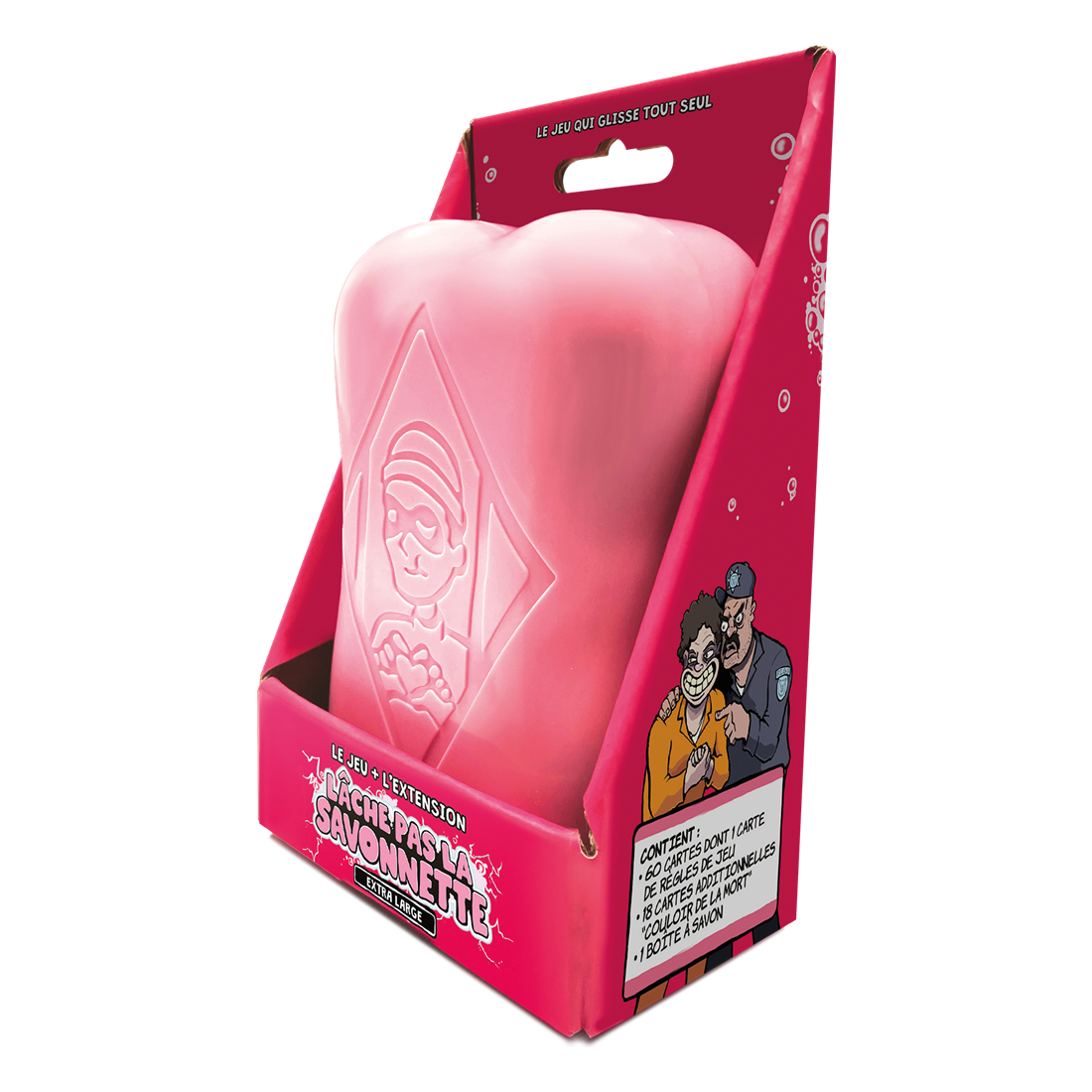 Lâche pas la Savonnette est un jeu de cartes humoristique rapide qui se déroule en prison. Dans ce jeu d’ambiance, il n’y a pas de gagnants mais un seul perdant. Vous incarnez des détenus qui devront à tout prix éviter de jouer une carte savonnette… Vos meilleures armes pour rester en sécurité ?