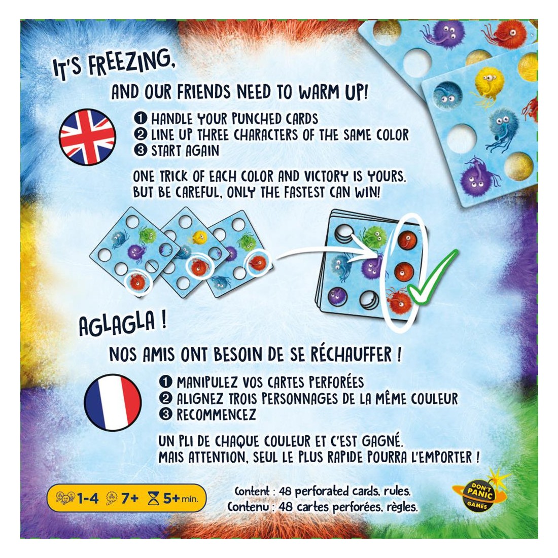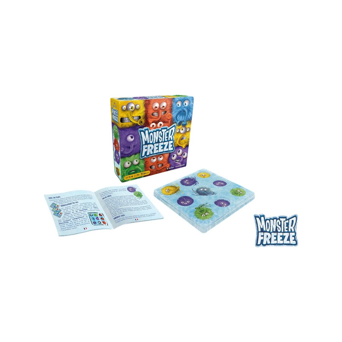 Monster Freeze est un jeu de société pour enfant jouable de 1 à 4 joueurs, dès 7 ans pour des parties d'environ 5 minutes, édité par Don't Panic Games. Le premier joueur à avoir posé 1 pli de chaque couleur (à savoir jaune, vert, rouge, bleu et violet) l’emporte. Pour réussir un pli, il suffit d’aligner 3 créatures de même couleur avec vos 3 cartes perforées !