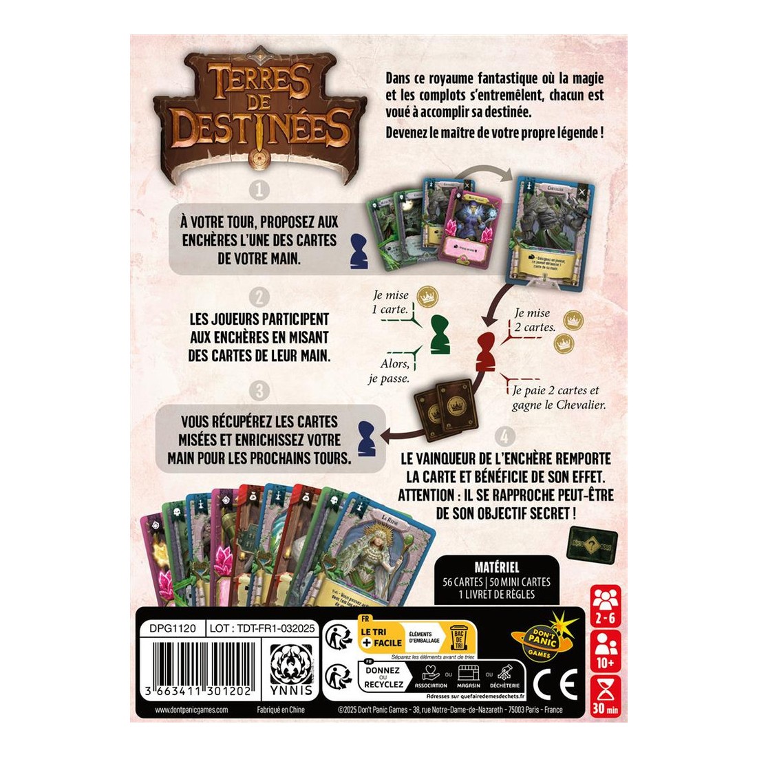 Avec son rythme dynamique, sa tension constante et ses multiples pouvoirs à combiner, Terres de Destinées offre des parties riches, variées et hautement rejouables, accessibles dès les premières minutes mais pleines de subtilités pour qui aime les jeux d’enchères.