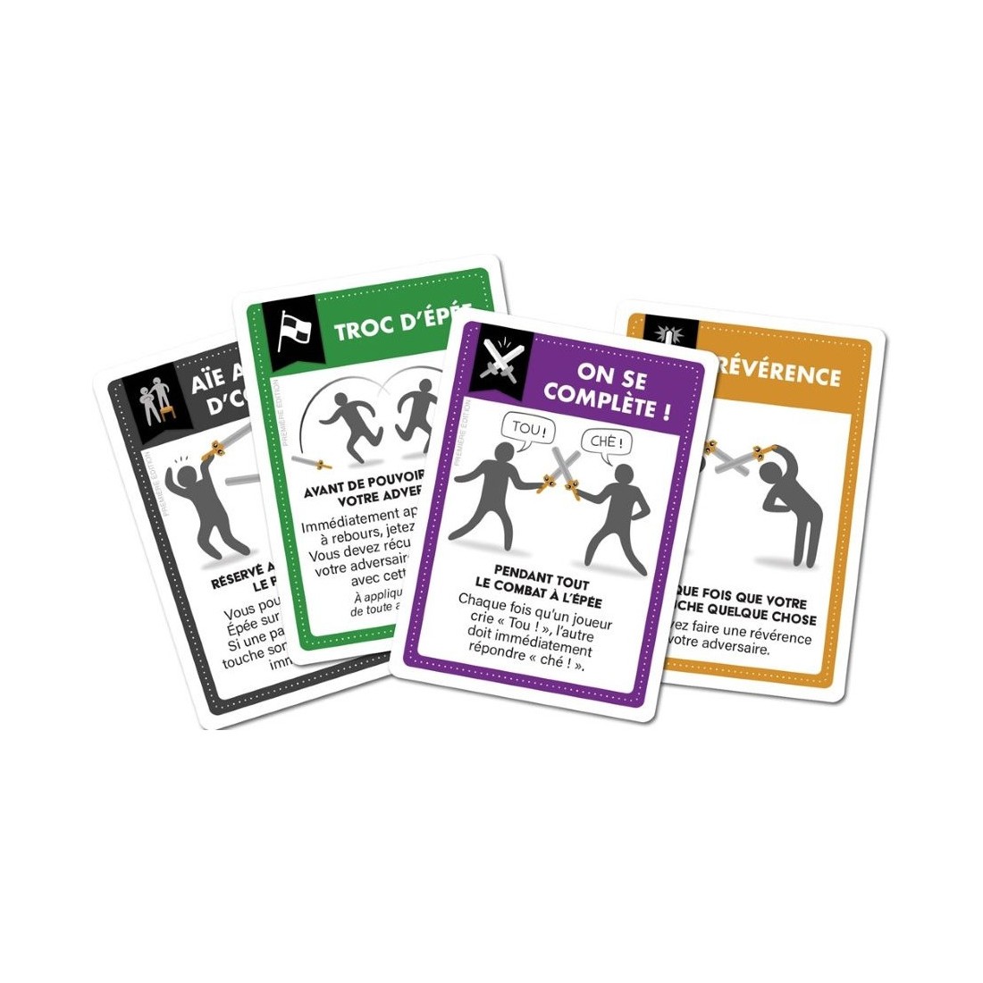 Mais s’il y a au moins deux belligérants, un duel est organisé ! En respectant les règles imposées par les cartes de la pile disputée, deux joueurs vont s’affronter à l’aide d’épées en mousse !