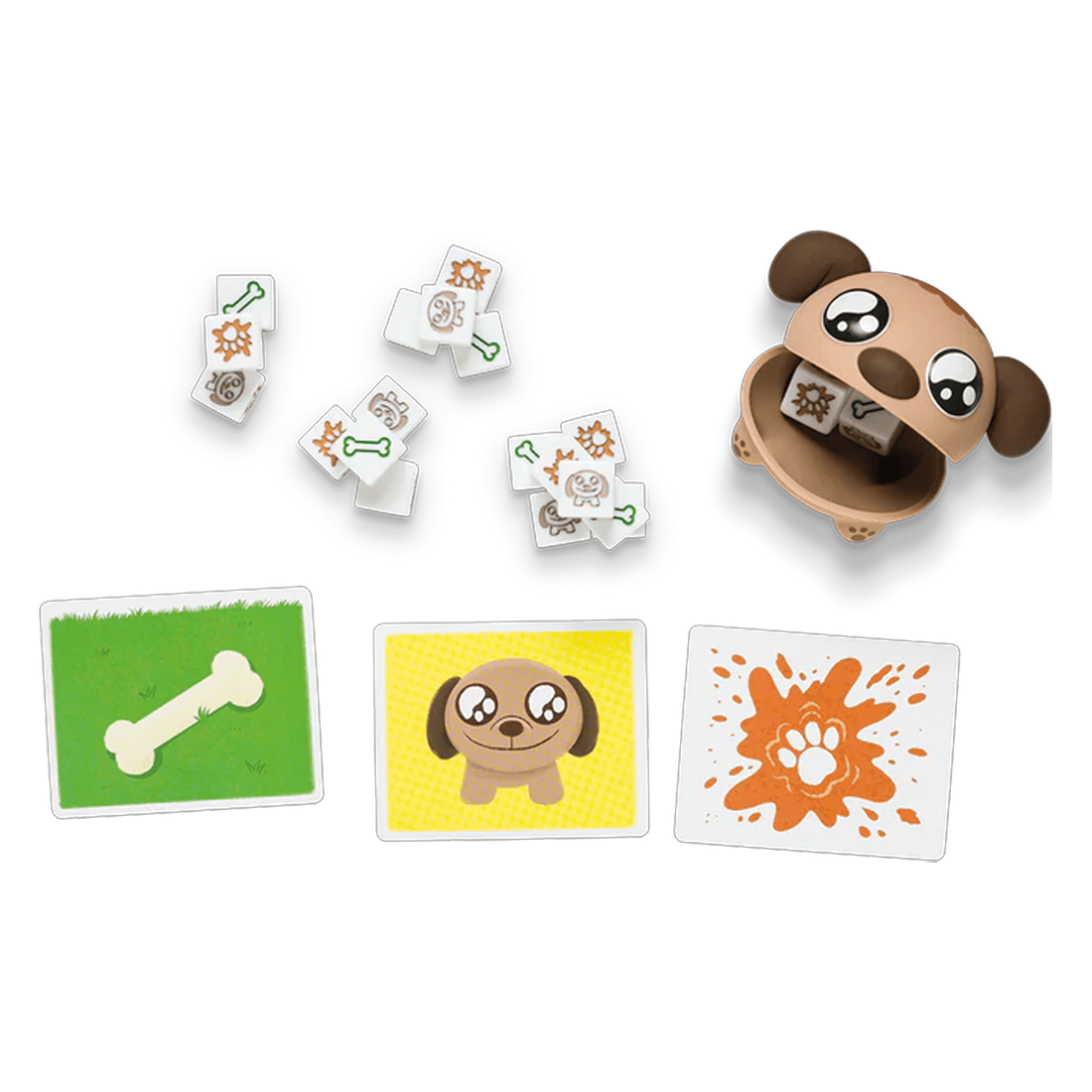 Préparez-vous à une bataille de boue délirante avec Mon Toutou Crado d’Exploding Kittens ! Chaque joueur commence avec le même nombre de dés. Mélangez-les dans le Doggy Shaker, puis révélez vos résultats pour tenter de vous débarrasser de vos dés avant tout le monde.