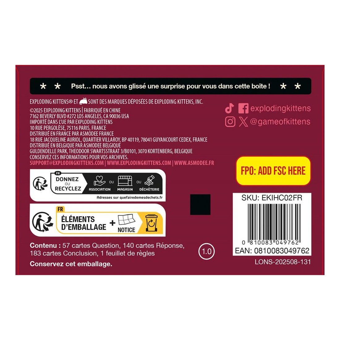 - Référence Exploding Kittens : EKIHC02FR