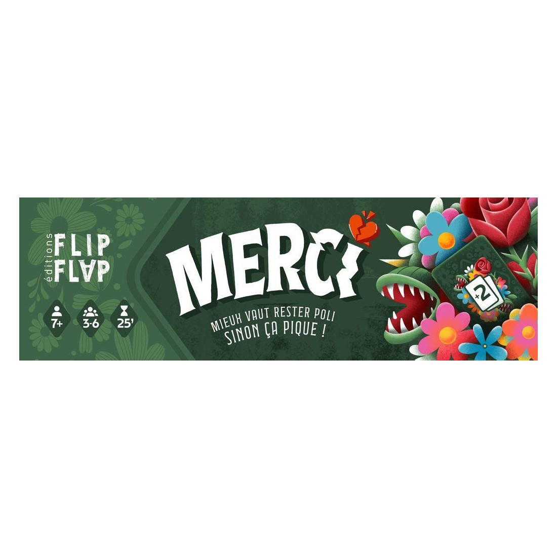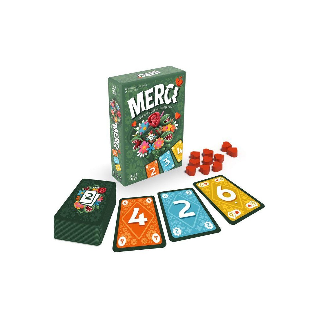 Merci est un jeu de politesse... qui ne manque pas de piquant ! Le but est de vous débarrasser de vos cartes en déclenchant des effets qui forcent vos adversaires à en récupérer, tout en leur imposant de vous dire "Merci". Mais attention, si quelqu'un oublie de montrer de la gratitude, il pourrait bien le regretter !