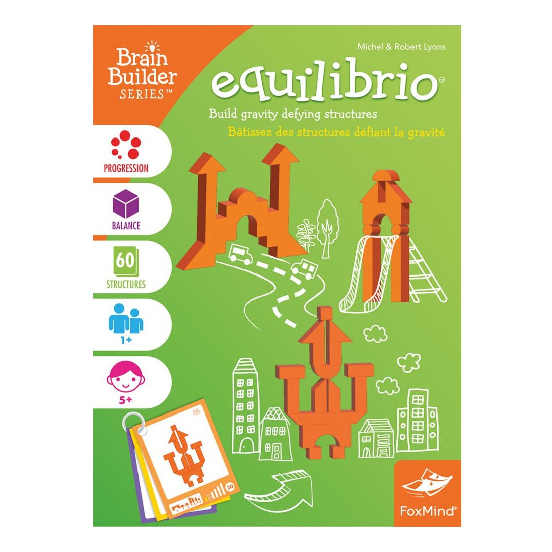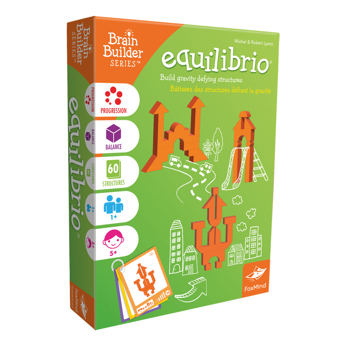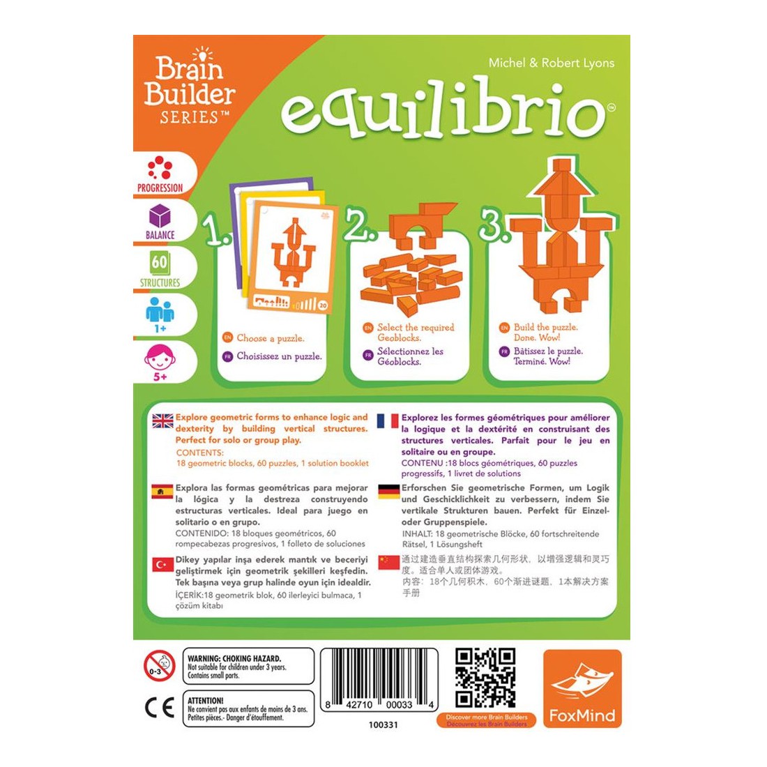 Equilibrio fait partie de la ligne Architecto qui comprend 4 jeux de visualisation spatiale où les joueurs progressent à leur rythme à travers une série de puzzles qui deviennent de plus en plus difficiles. Les jeux comprennent le même ensemble de Geoblocks et un livret de puzzle séparé en 6 niveaux de difficulté.