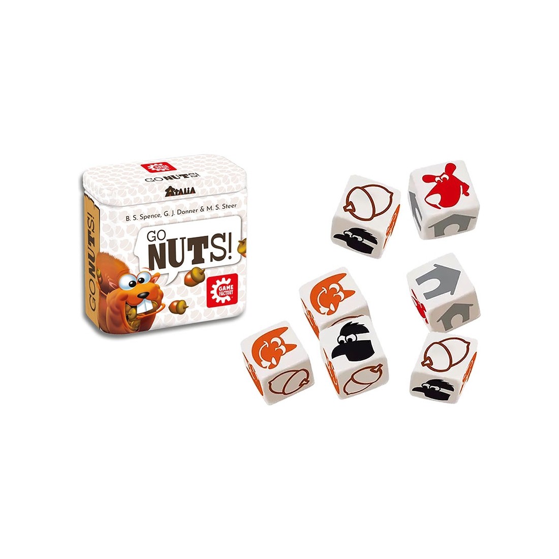 Go Nuts est un jeu de stop ou encore pour 2 à 4 joueurs dès 7 ans, et des parties de 15 minutes et édité par Game Factory. Collectez autant de glands que possible dans ce jeu de dés prenant, mais ne soyez pas trop gourmand ou les autres joueurs lâcheront leurs chiens !Go Nuts - Comment ça marche