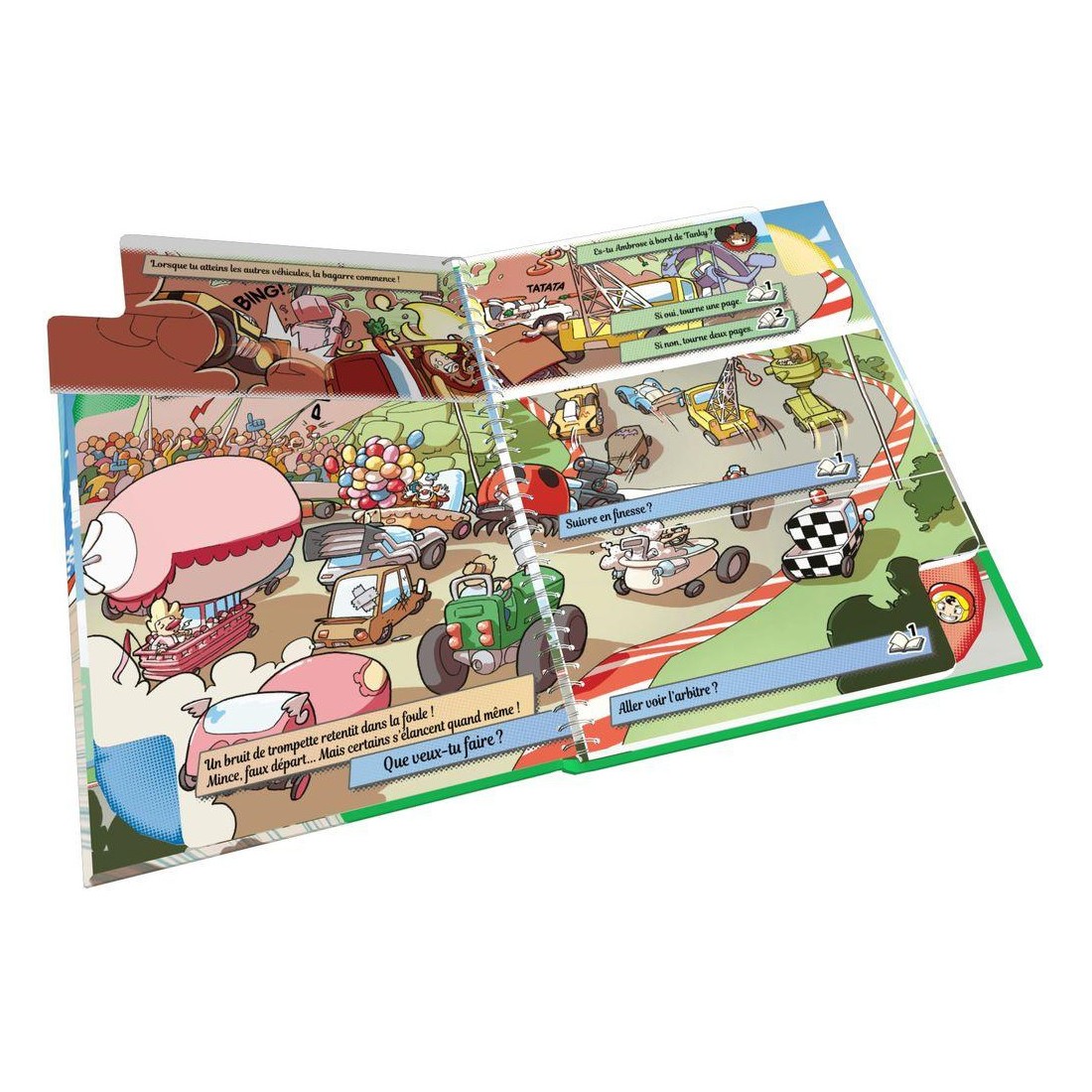 Crée ta propre histoire : à chaque page coupée en trois, tu devras faire un choix. Ouvre le livre et choisis ton pilote et son véhicule : Ambrose à bord de Tanky, son char blindé ? Bip-Bop dans sa Futuro-Mobile, la merveille technologique ? Ou Haru et son Éclair Rouge, le super bolide ?
