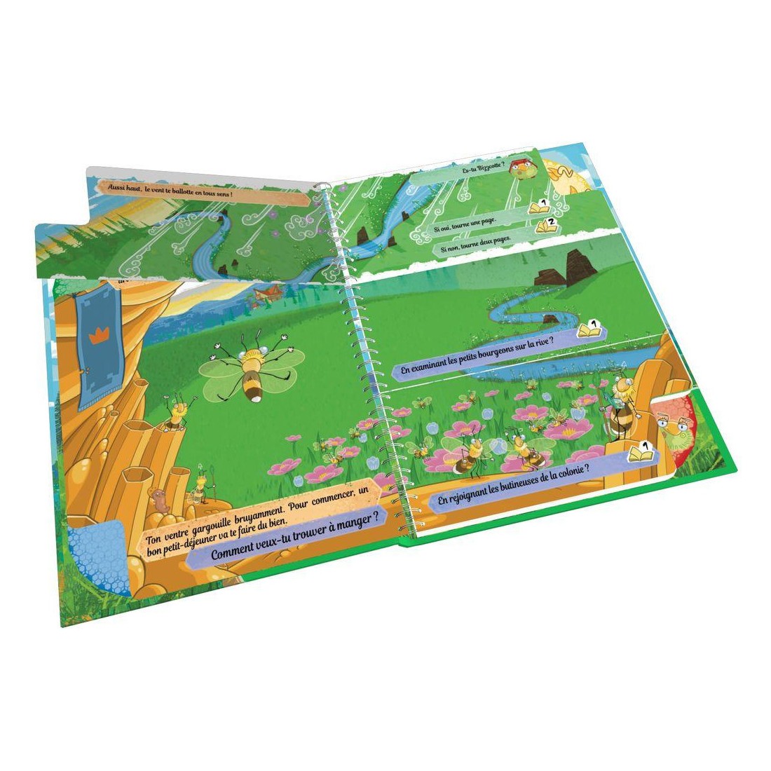 Crée ta propre histoire : à chaque page coupée en trois tu devras faire un choix. Ouvre le livre et choisis l’abeille que tu souhaites incarner : Bizzcotte, l’ouvrière puissante et téméraire ? Ou Bizzou, la nourrice fine et pleine de malice ? Maintenant, ton aventure peut commencer.