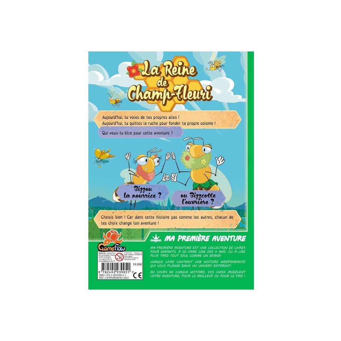 Tu as toujours rêvé d’être un héros ? La gamme Ma première aventure t’offre cette opportunité. Ouvre le livre choisi un personnage et construit ton histoire en faisant des choix matérialisés par des pages coupées en 3. Dans Ma première aventure : la reine du champ fleuri, tu quittes le nid pour créer ta propre colonie et construire ta propre ruche.