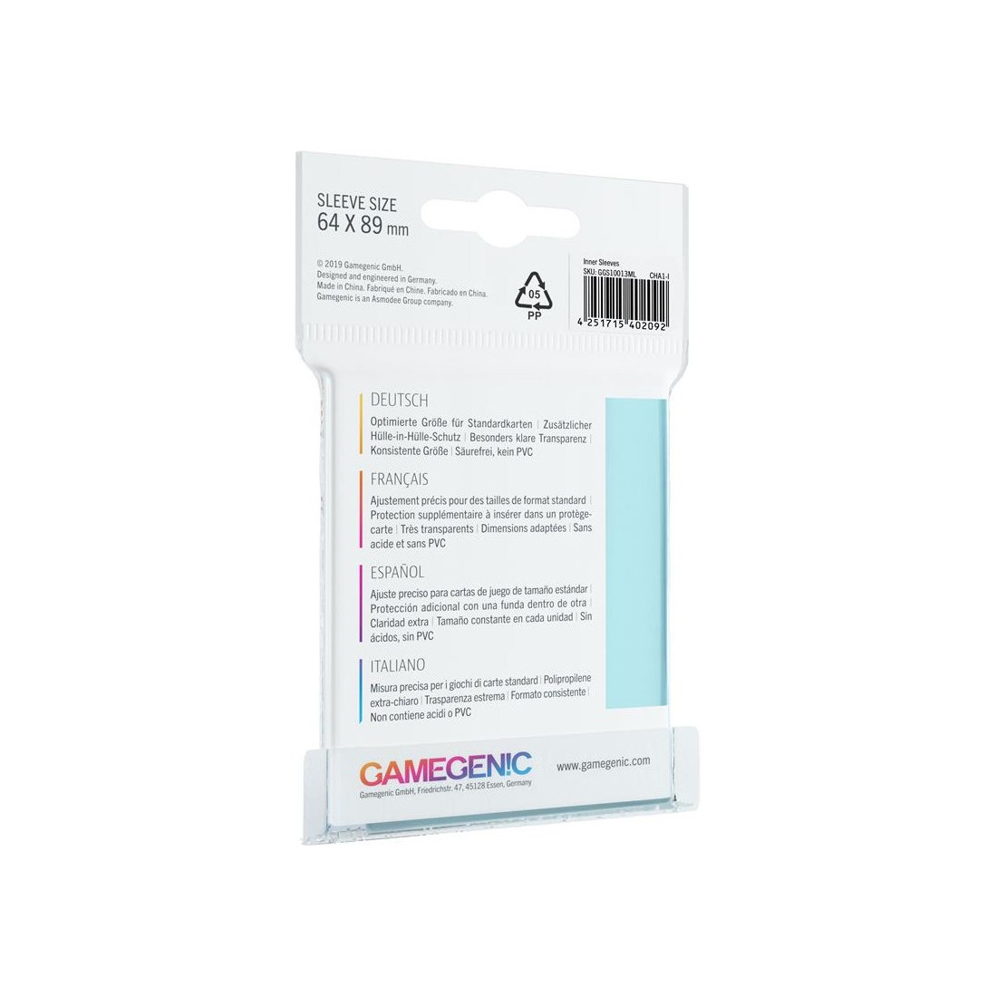 Chaque paquet de pochettes intérieures Gamegenic contient 100 pochettes transparentes de 64 x 89 mm, parfaites pour toutes les cartes à collectionner de taille standard .