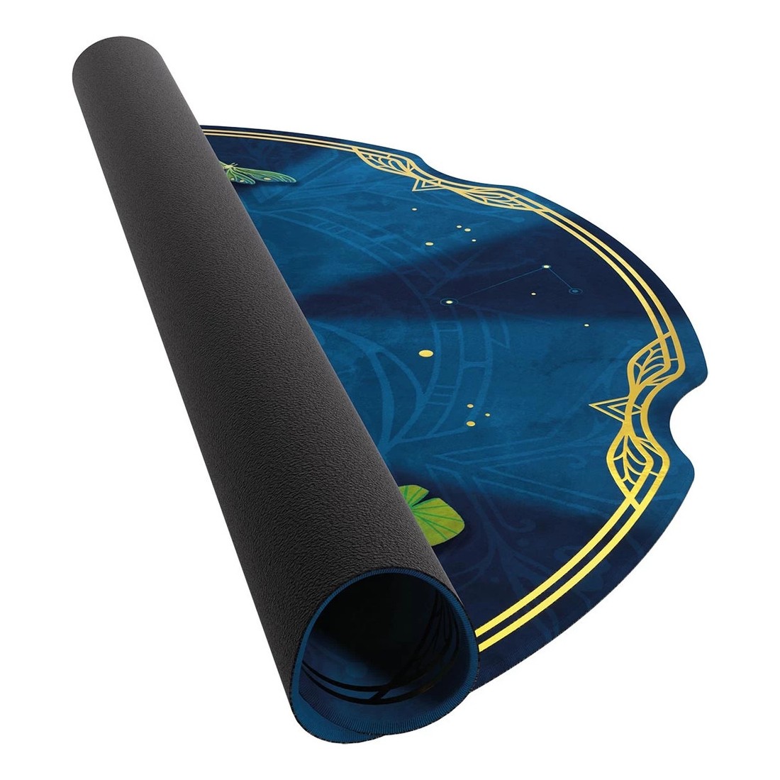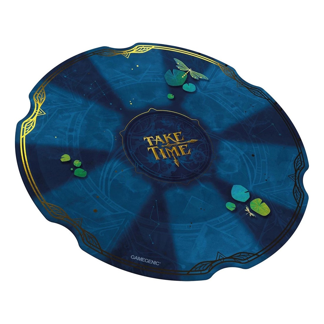 Ce tapis de jeu moelleux de 2 mm d'épaisseur est doté d'un emplacement spécialement conçu pour les cartes. Outre son imprimé éclatant et sa conception de haute qualité, il est orné de détails dorés et du logo Take Time.