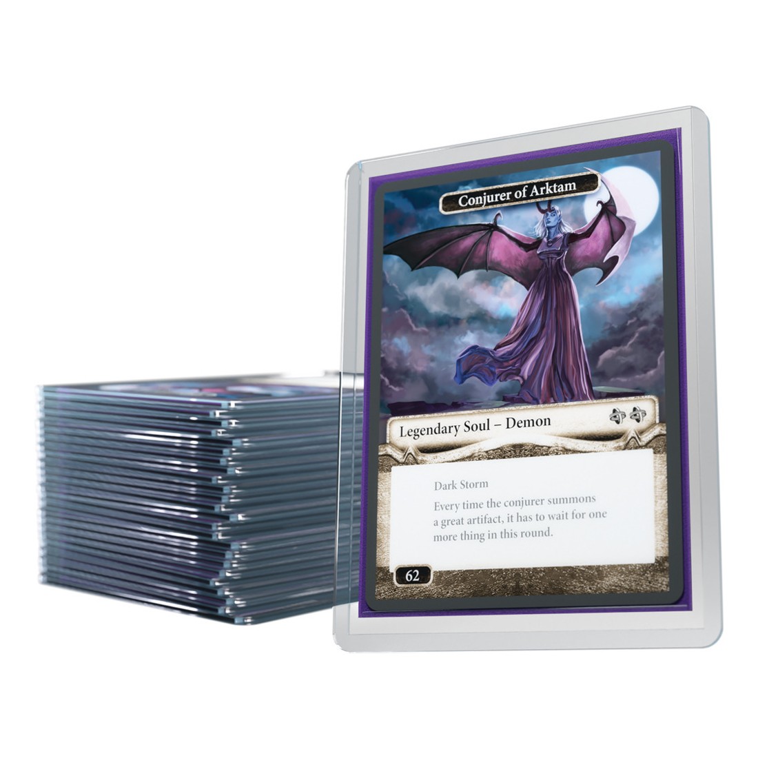 Les Toploading Exoshields Gamegenic sont des protège-cartes rigides de qualité premium, ultra-transparents et spécialement conçus pour les cartes au format standard.Le plastique épais enveloppe parfaitement la carte, la garde propre et la protège contre les dommages. Les Toploading Exoshields sont rigides, durables et dotés d’une protection Uv, ce qui les rend idéaux pour de très nombreuses utilisations.