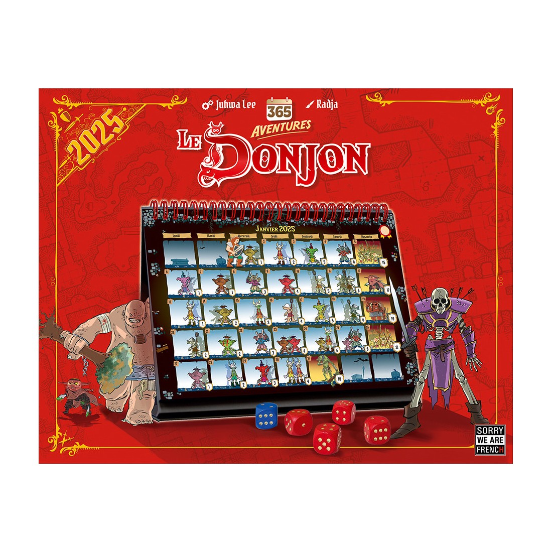 Sorry We Are French est ravi de vous présenter en exclusivité sa dernière création pour l’année 2024 : un Olni (Objet Ludique Non Identifié) qui promet de vous étonner ! Découvrez 365 Aventures – Le Donjon, un concept innovant développé par Sorry We Are French, fruit de l’imagination de Juhwa Lee et sublimé par les illustrations de Radja Illustrateur.- Installez-le sur votre bureau dès le 1er janvier 2025 et vivez, jour après jour, des confrontations avec de nouveaux monstres.
