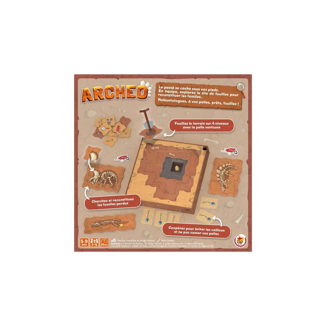 Coopérez pour découvrir les vestiges du passé avec votre pelle-ventouse. Creusez sur 4 niveaux, reconstituez vos découvertes et tentez d’obtenir 10 étoiles. Mais attention, débarrassez-vous de vos cailloux avant qu’ils ne cassent votre pelle. A vos pelles, prêts ? Fouillez !