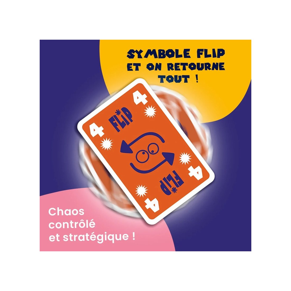 Ce jeu de plis se joue avec 52 cartes de couleur, chacune ayant une face claire et une face sombre, avec des valeurs de 1 à 13. Attention aux cartes Flip : dès qu’elles apparaissent, tous les joueurs retournent leur jeu… surprise !
