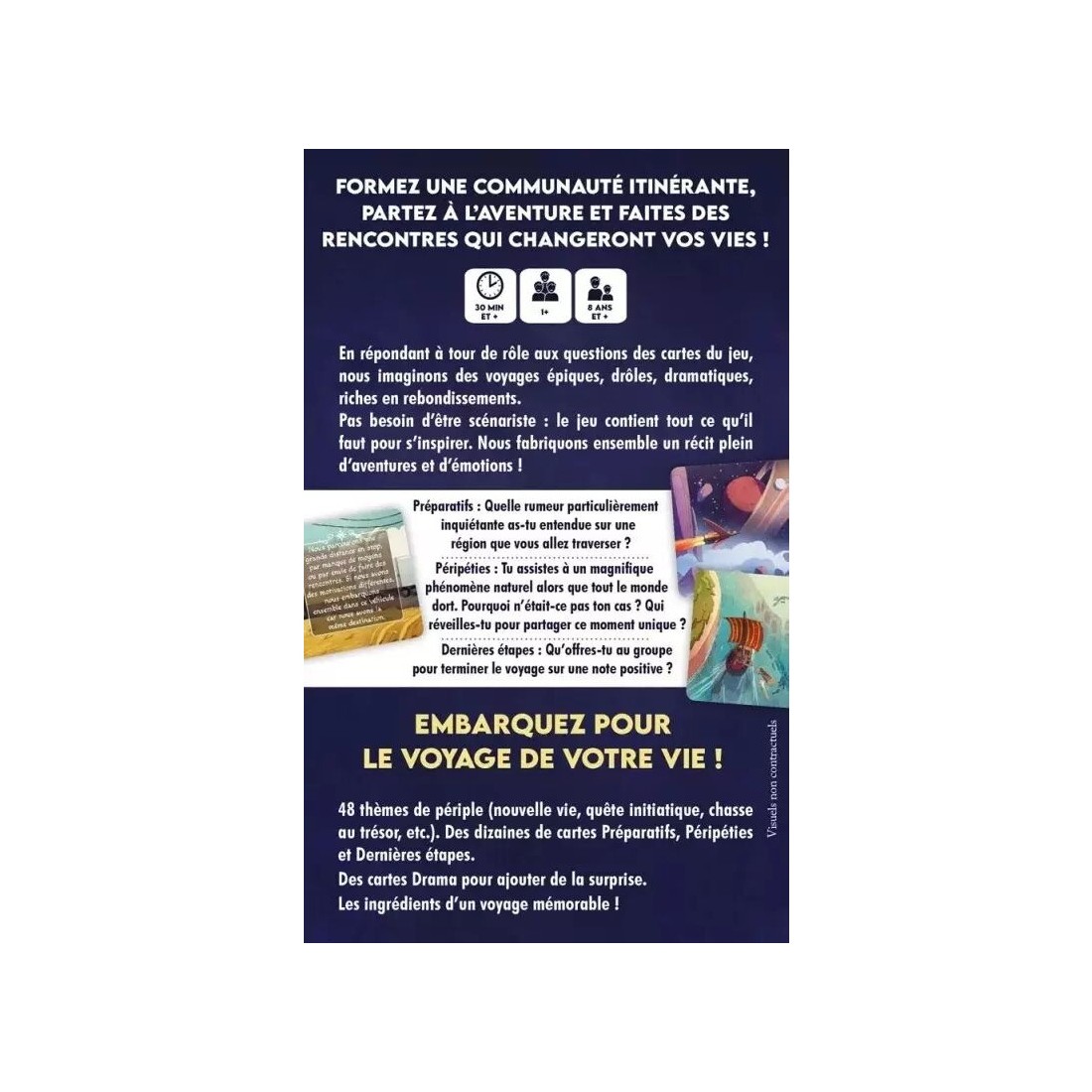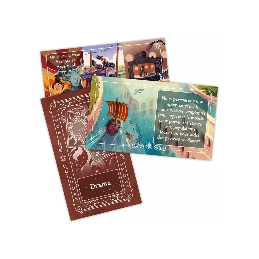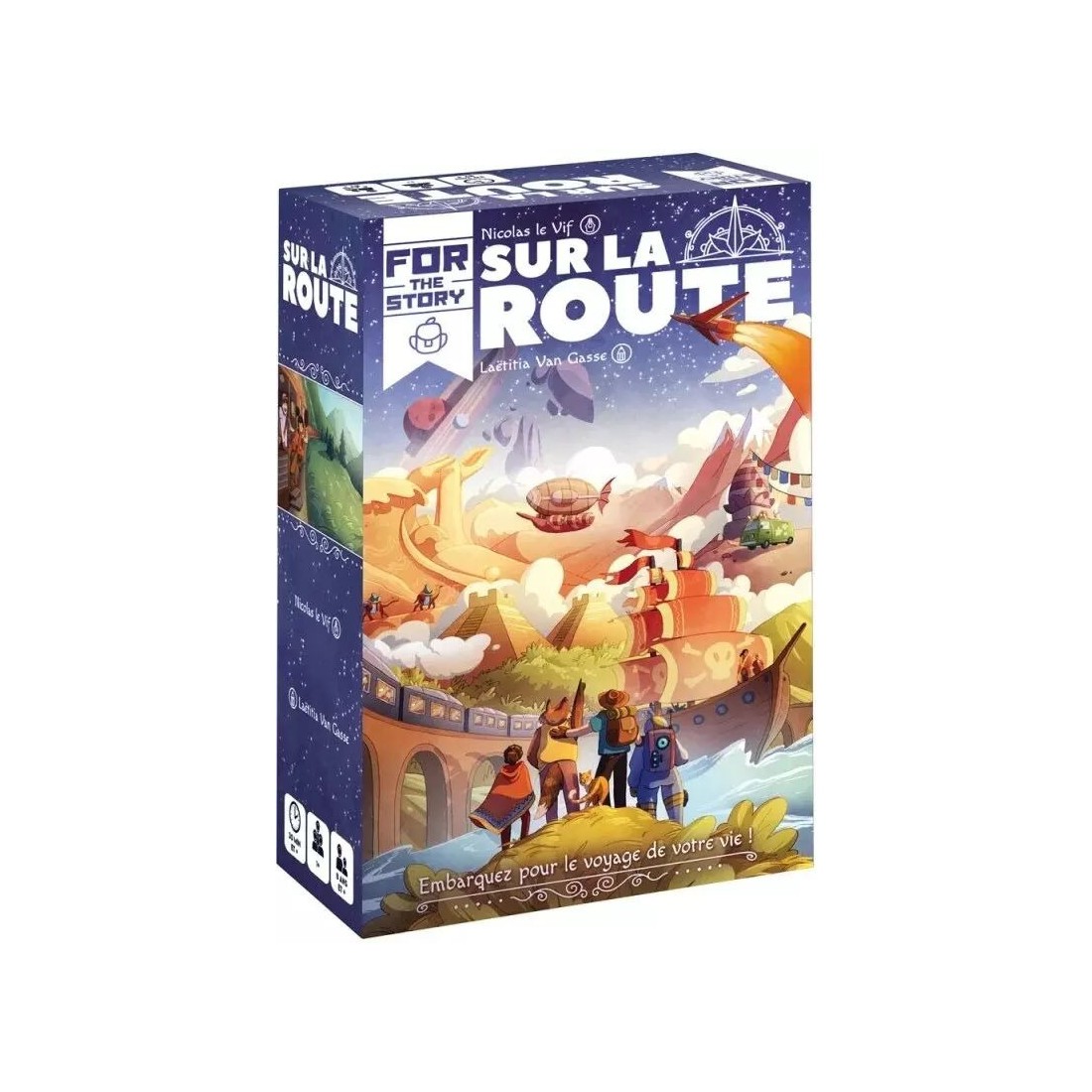 La progression de celui-ci indique l’avancée de notre trajet et le paquet dans lequel piocher. La partie s’achèvera lorsqu'il atteindra la case Fin du voyage. Quand ceci arrivera, nous lirons la carte correspondante pour conclure notre récit.