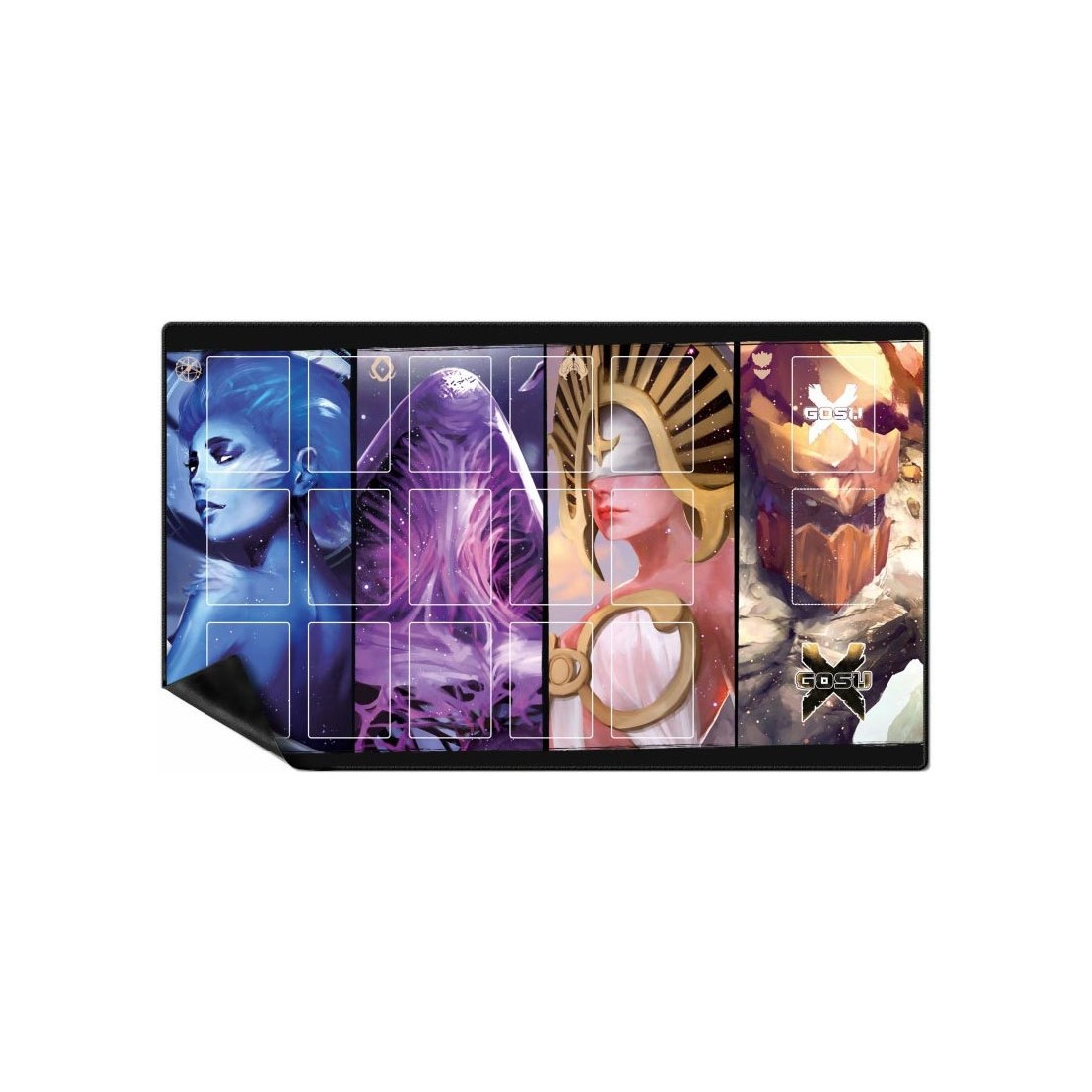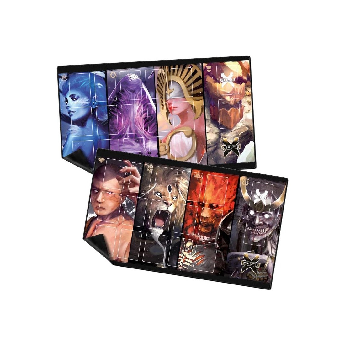 Le Playmat Gosu X : Version 1 est de taille 60x35 cm et est doté d'une finition aux bords retournés, il comporte des espaces dédiés aux différentes zones de jeu. Propulsez vos affrontements au niveau supérieur grâce à ce tapis de jeu en Néoprène spécialement conçu pour Gosu X. Illustré de 4 des 8 Immortels du jeu de base, ce tapis de jeu vous offre le meilleur confort possible pour organiser et gérer votre Armée.- Nombre de joueurs : 1 joueur